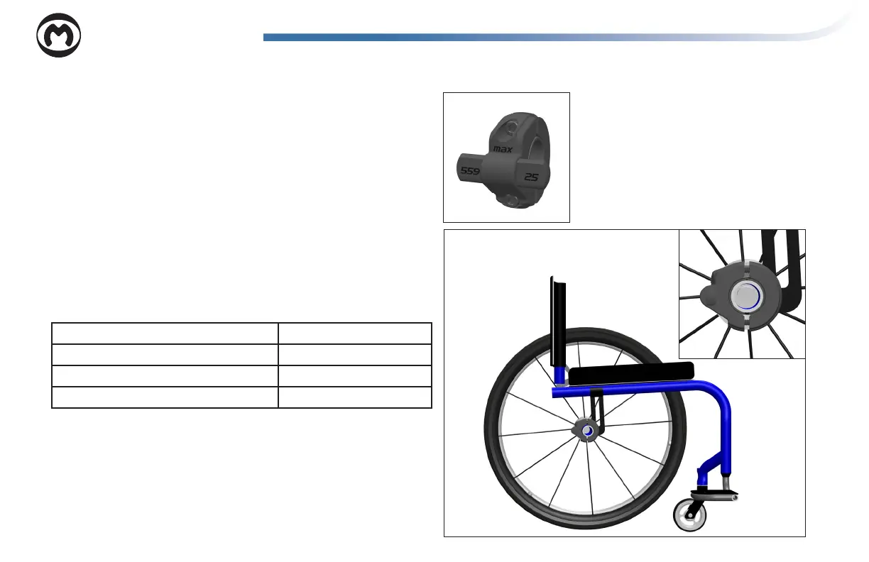 tion de la taille de la roue arrière du fauteuil roulant. Cela est noté