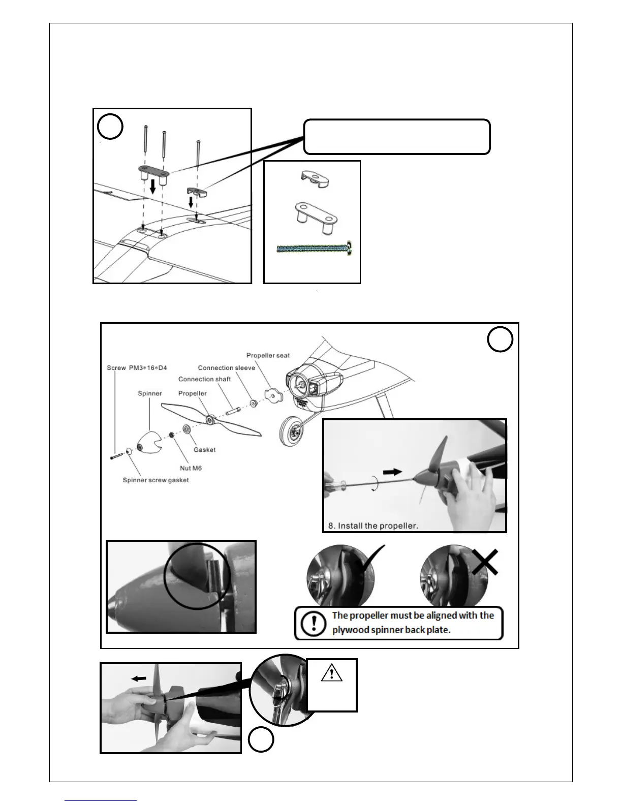 Fit the propeller and spinner to