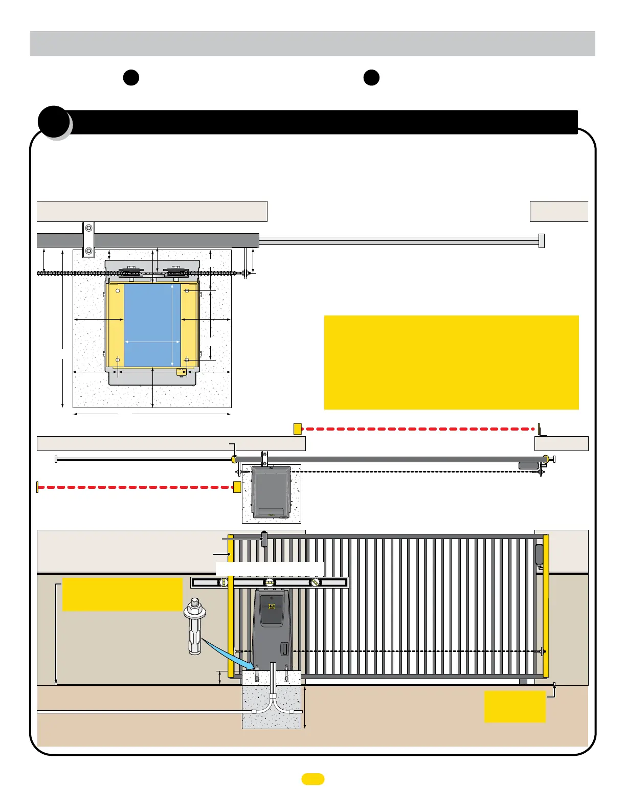Concrete Depth Note: The heavier the gate, the deeper the concrete pad should be. At least two feet recommended for heavier gate.