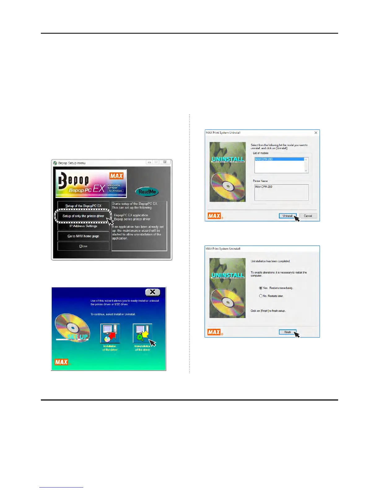 ● Printing even one time after opening the computer can cause the uninstall to fail. Please restart your computer