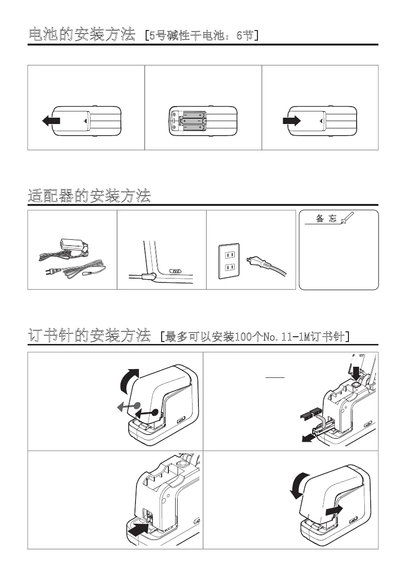 订书针的安装方法 [最多可以安装100个No.11-1M订书针]
