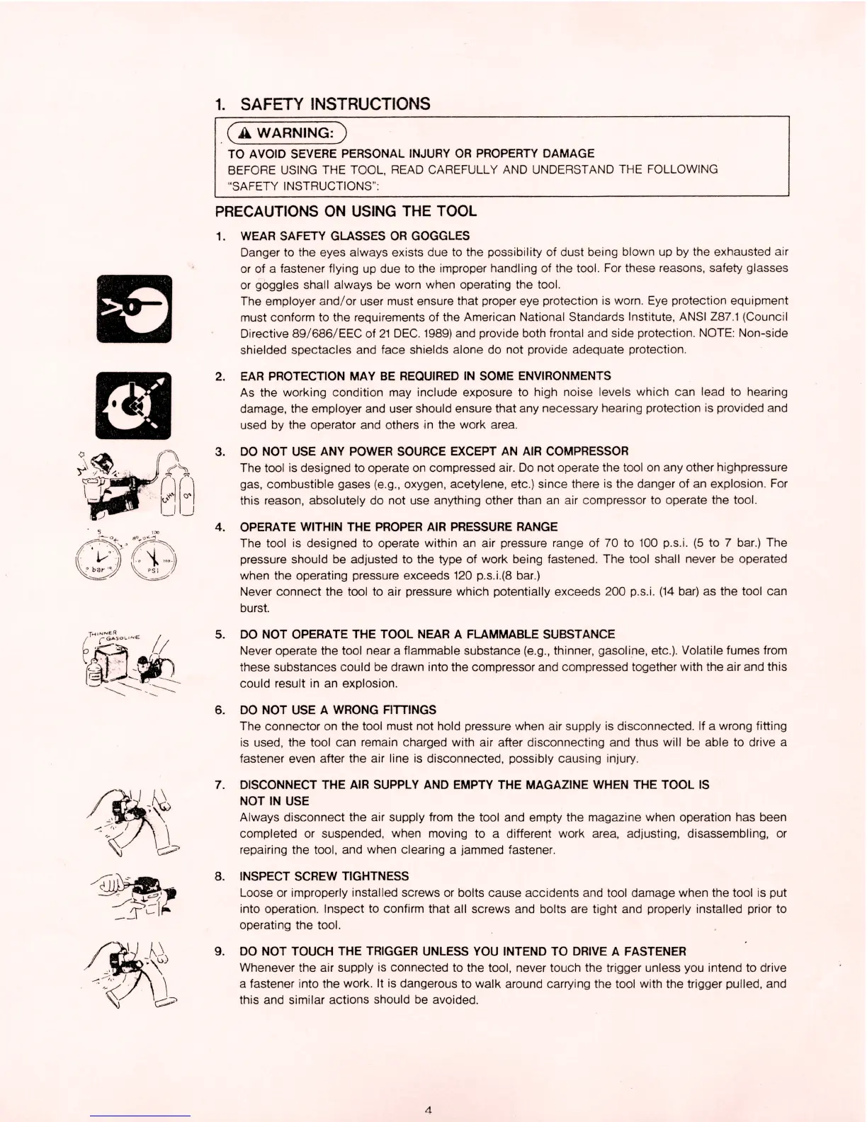Max CN55 - Specifications and Technical Data; Name of Parts; Tool Specifications; Fastener Specifications