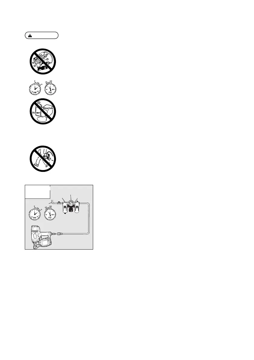 The tool is designed to operate on compressed air. Do not operate the tool on any other highpressure