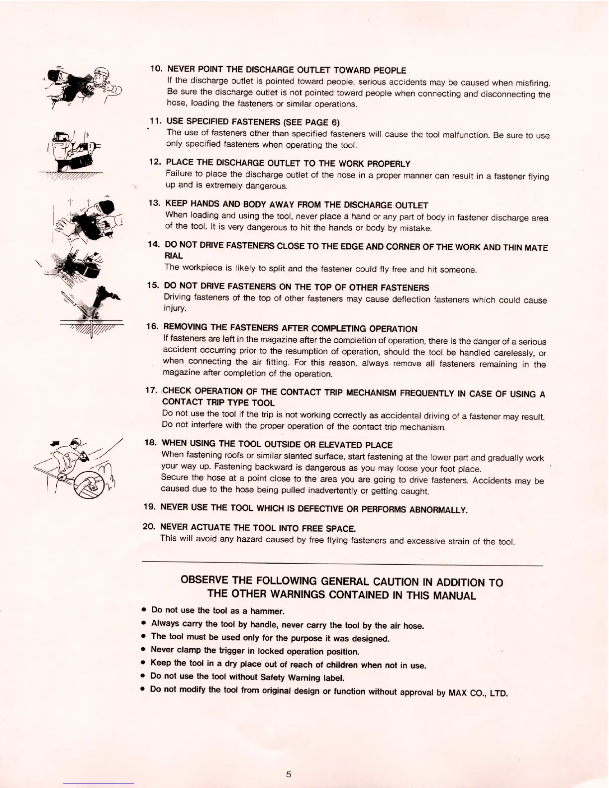 Max CN80 - Discharge Outlet and Fastener Safety; Workpiece and Fastener Handling