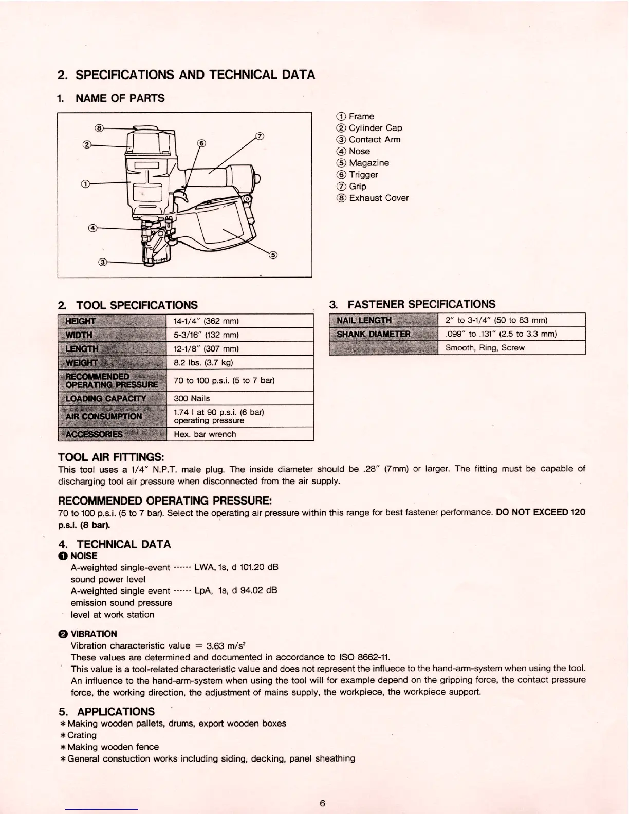 Max CN80 - Specifications and Technical Data; Name of Parts; Recommended Operating Pressure; Product View