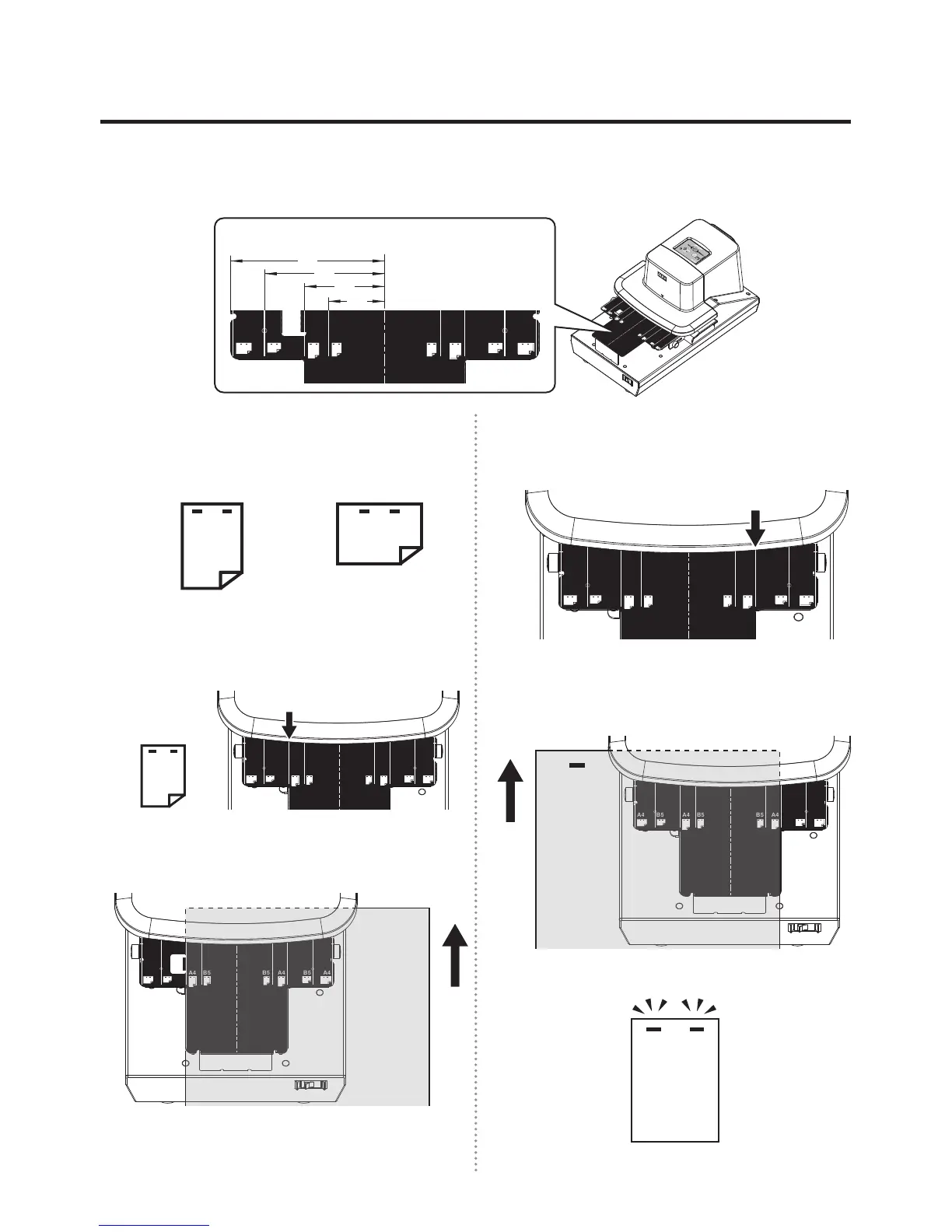 纸张应与纸张座标线对齐,以便以相等间距进行装订(如躲避装订孔)。(B5纸不可自动垂