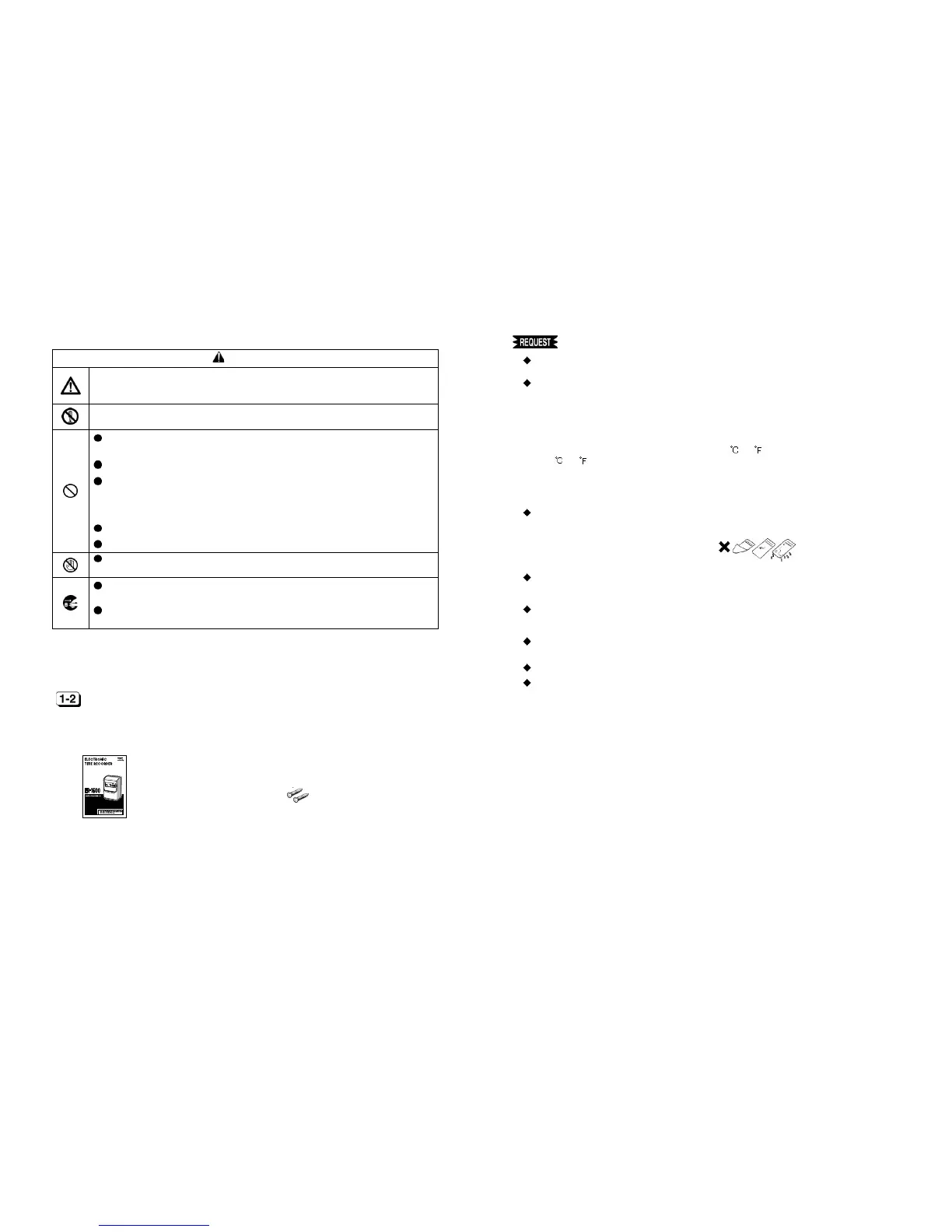 Never disassemble or modify this instrument. It could cause a fire, electric shock, or
