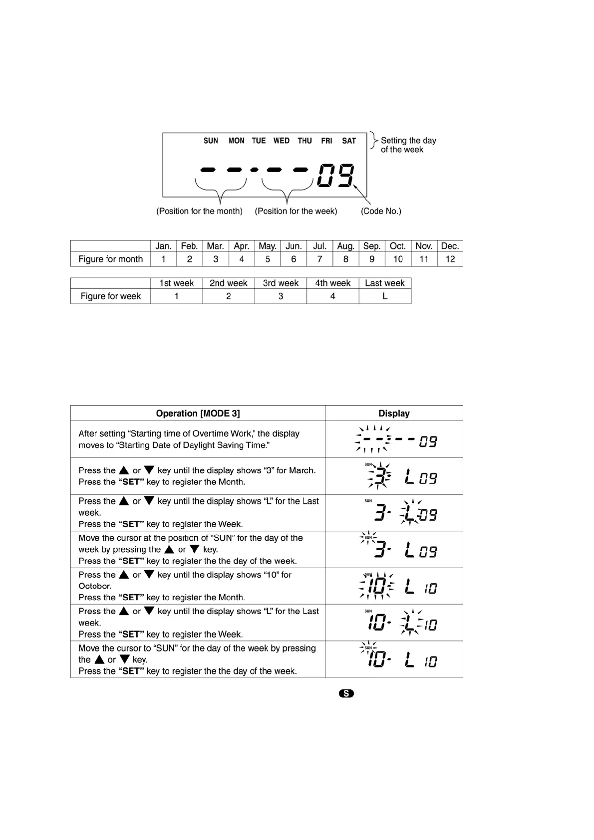After setting “Starting time of Overtime work”, the display moves to ”Starting Date of Daylight