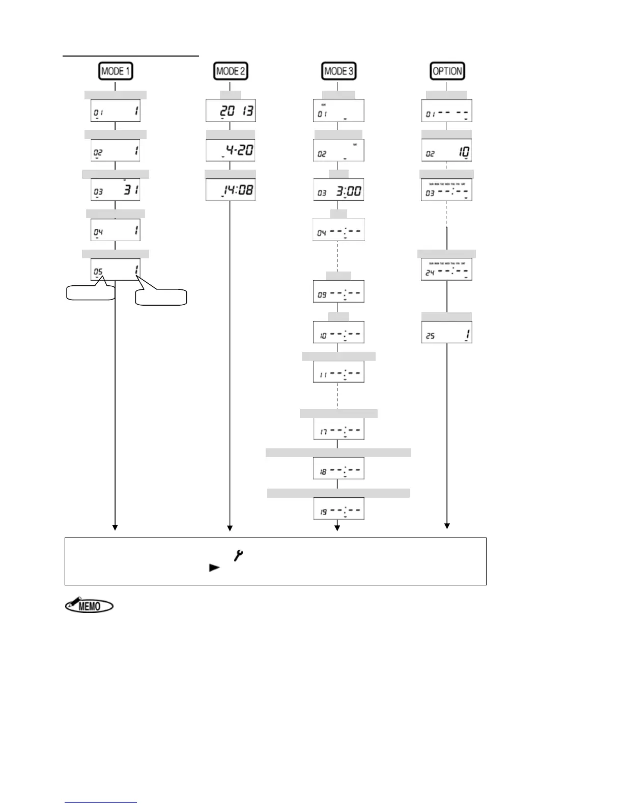 setting (CODE 01 in MODE 1), Daily Total Hours setting (CODE 05 in MODE1)