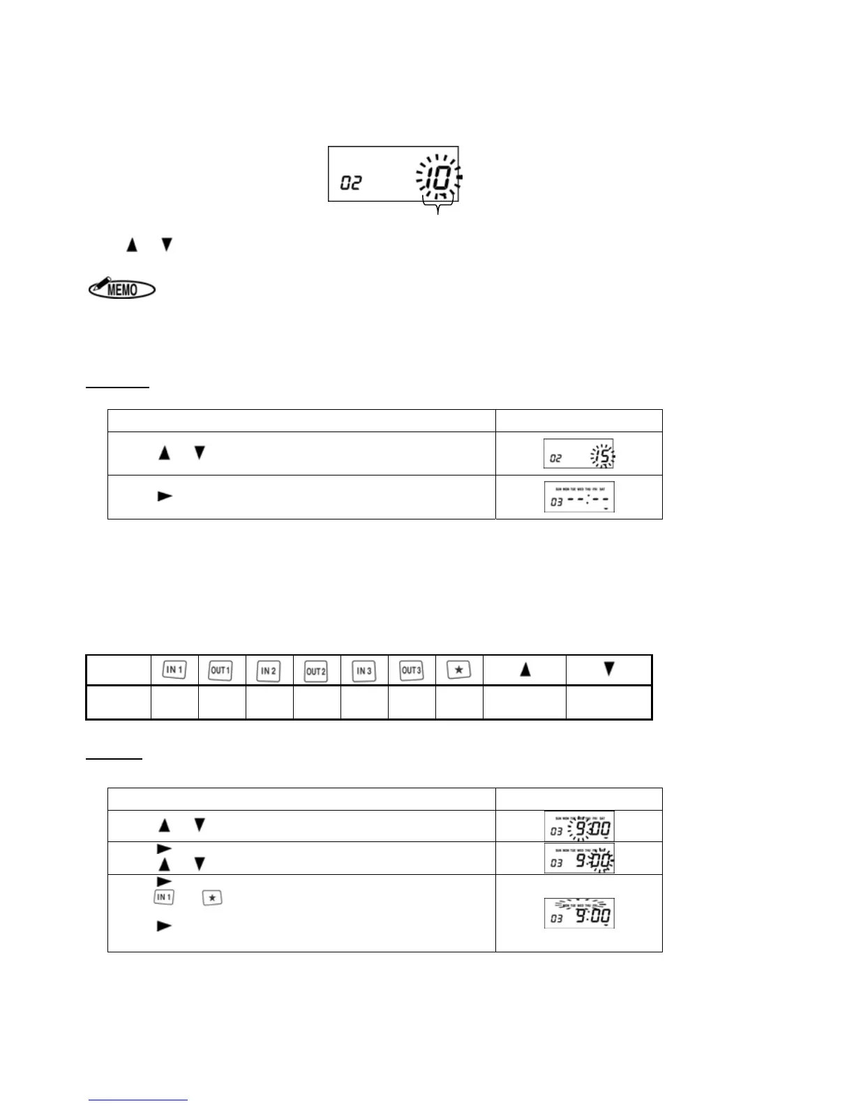 Press to display CODE 03 to set the next time and the day of