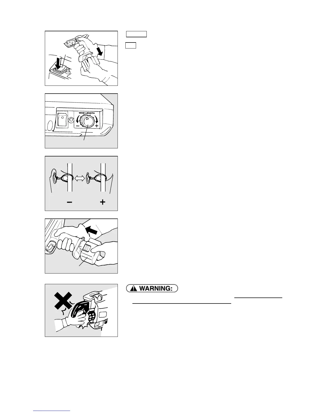① Be sure to turn the main switch OFF, to lock the trigger and detach the battery