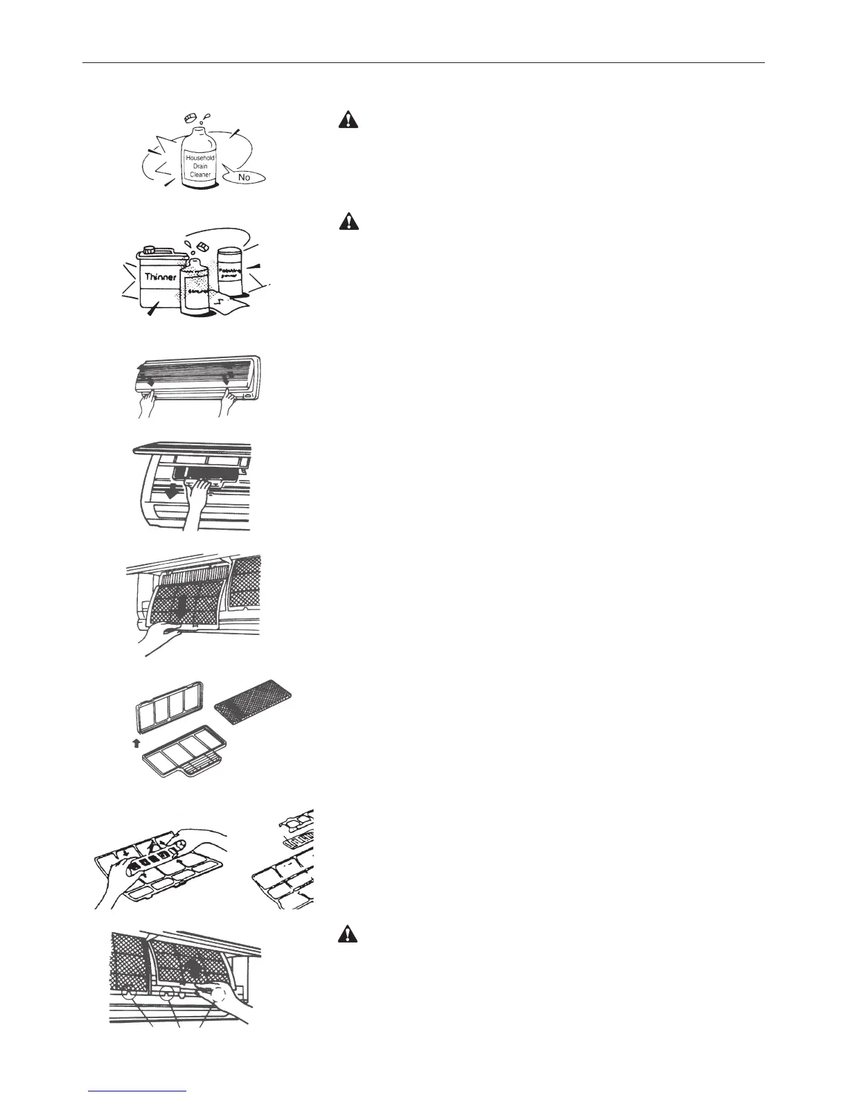 - Do not use water to clean inside the air conditioner. Exposure to water can