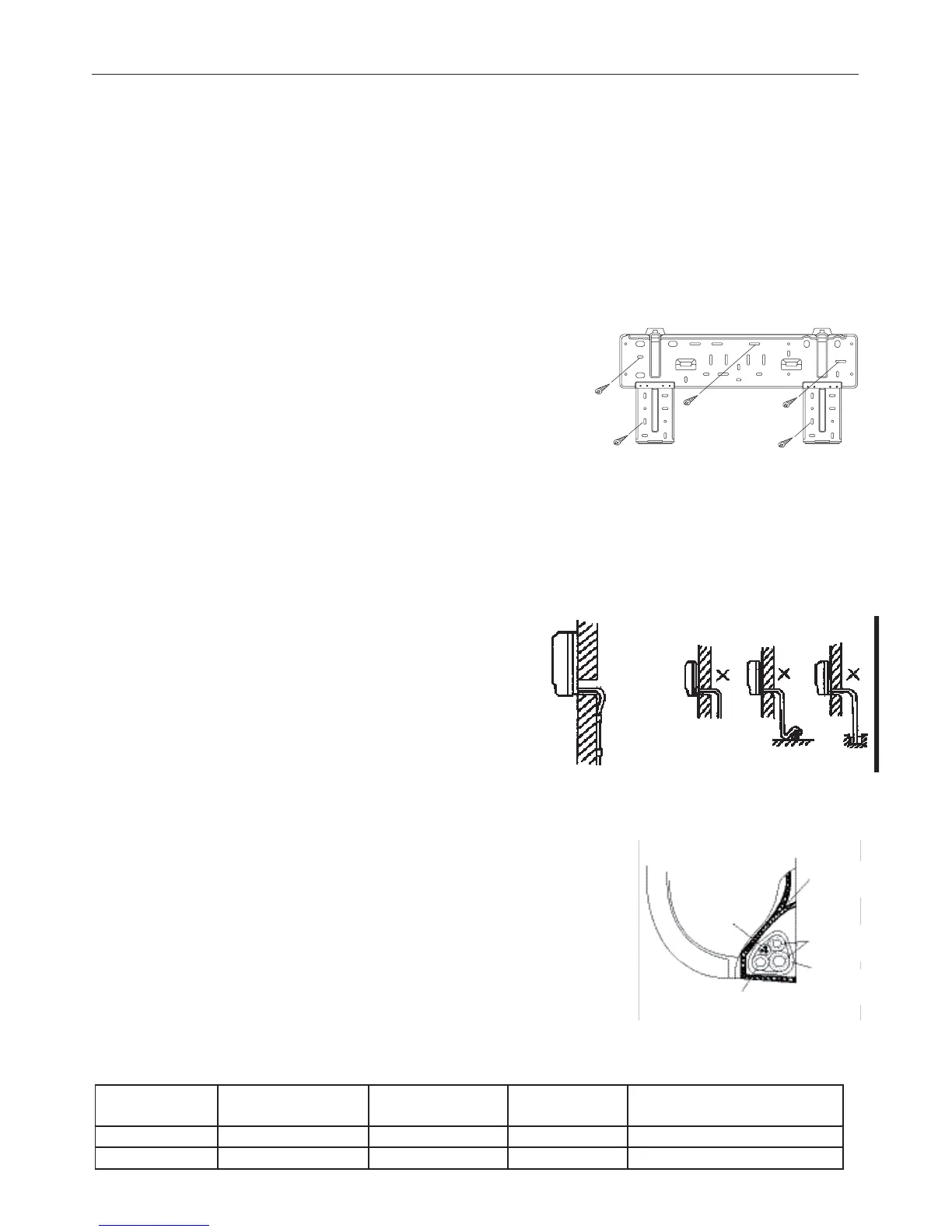 1. Fit the installation plate horizontally on structural parts of the wall with spaces around the installation plate.