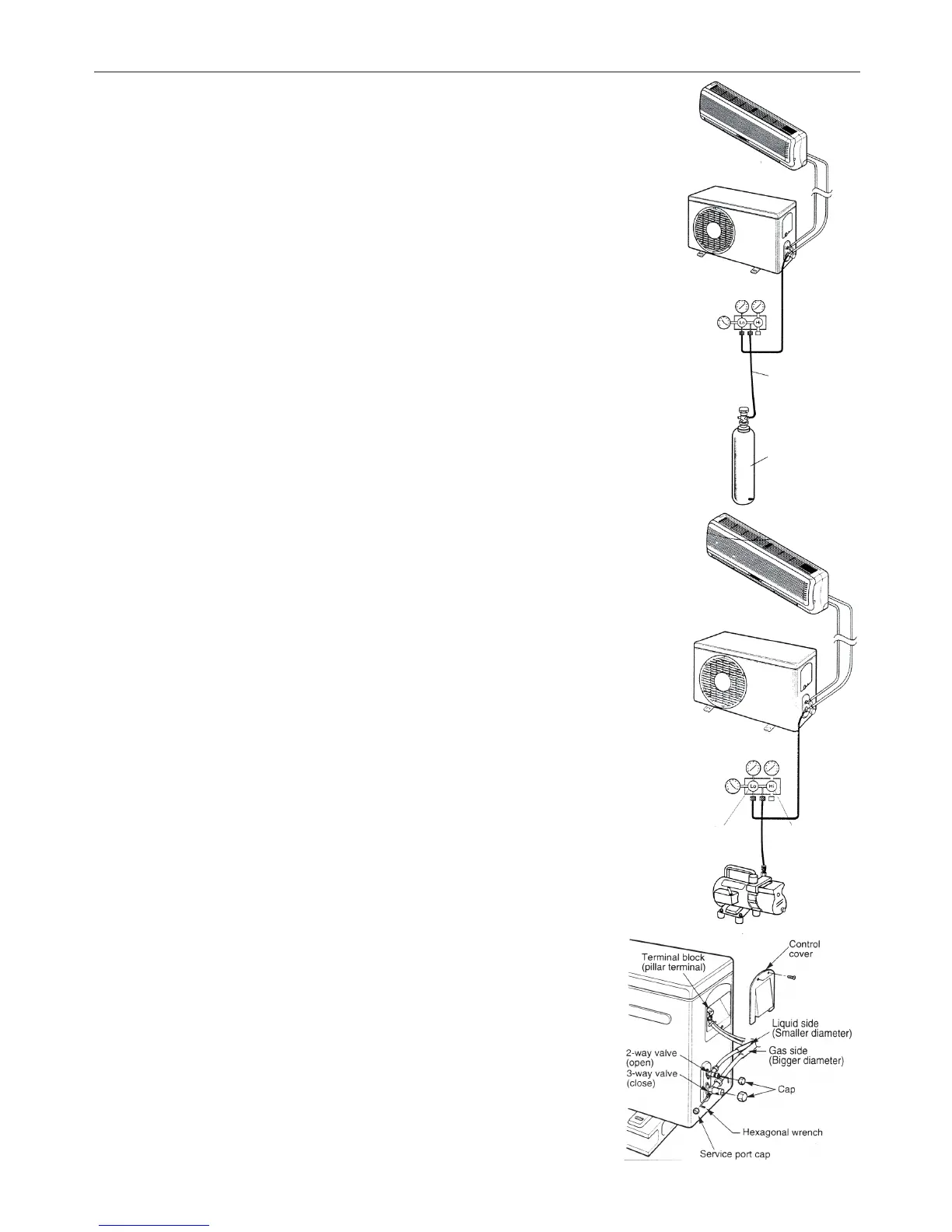 Note that both the liquid and the gas side service valves on the outdoor unit are