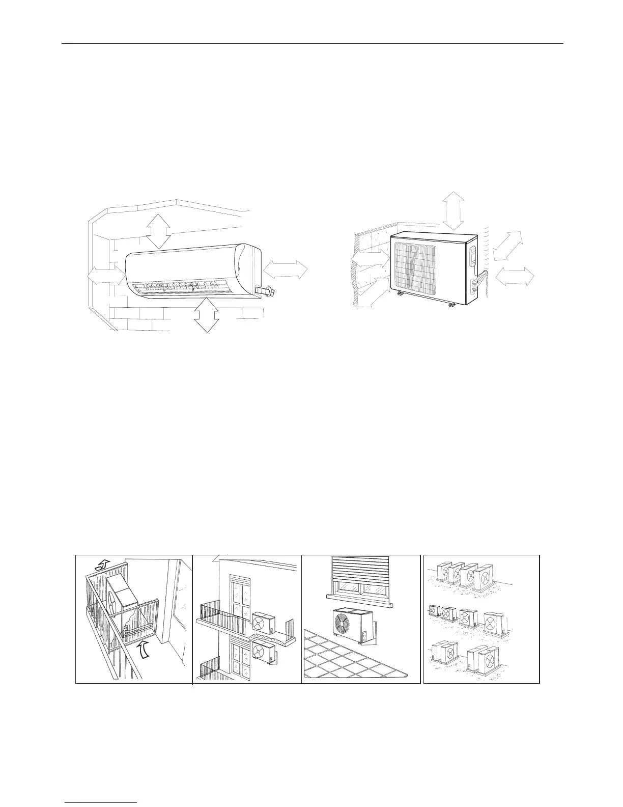 • Wählen Sie den Platz so, dass die warme Luft und die Geräusche der Klimaanlage die Nachbarn nicht stören.