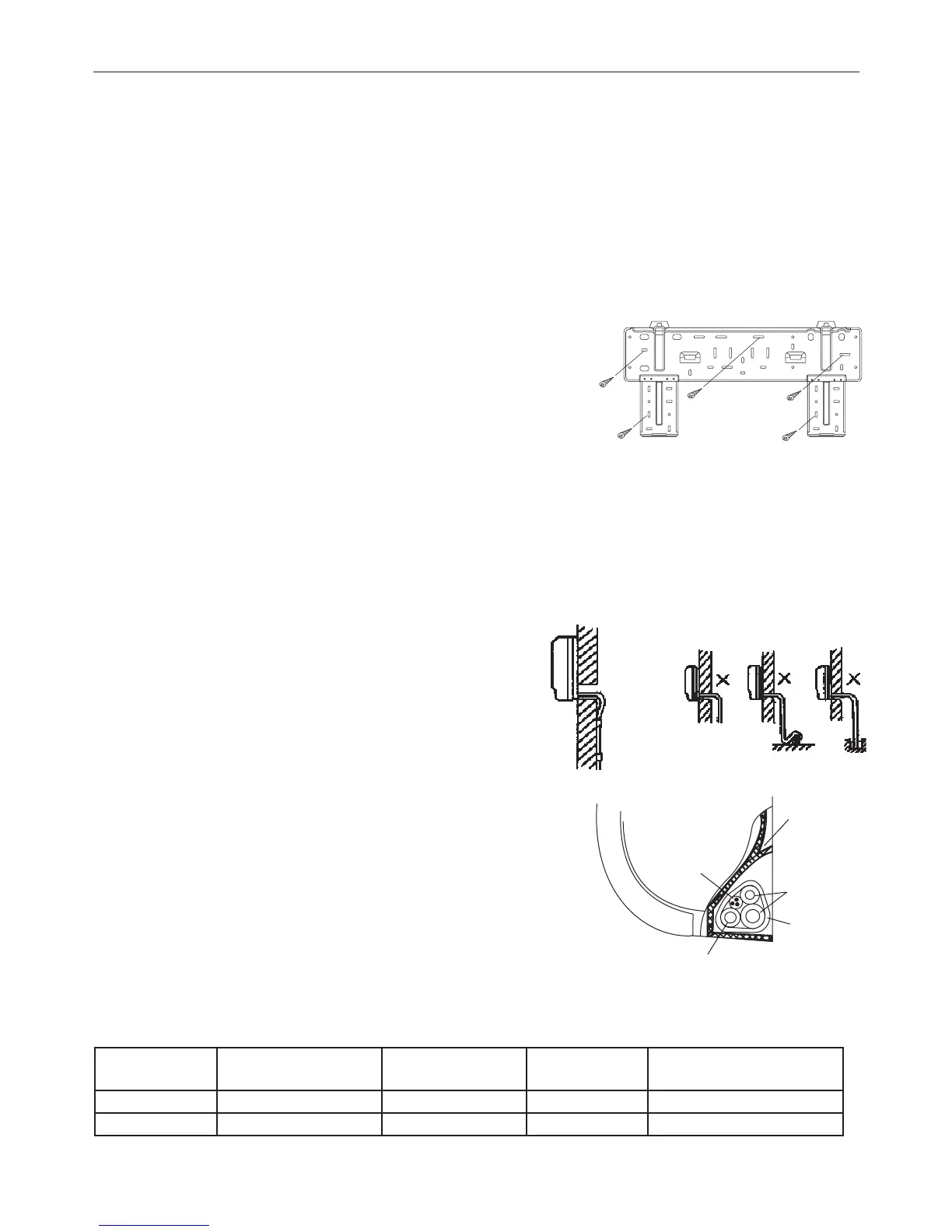 • Wenn das Gerät aufgehängt werden soll, muss die Montagestütze die entsprechenden Übersicht angegebenen technischen