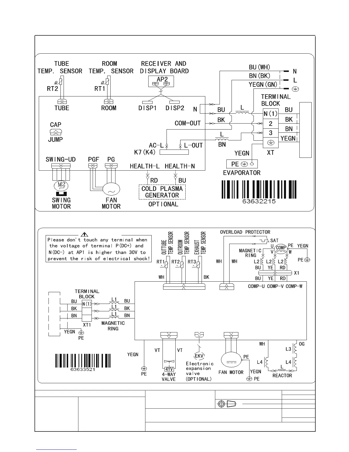 5300 W, 7000 W DC inverter Indoor unit wiring diagram
