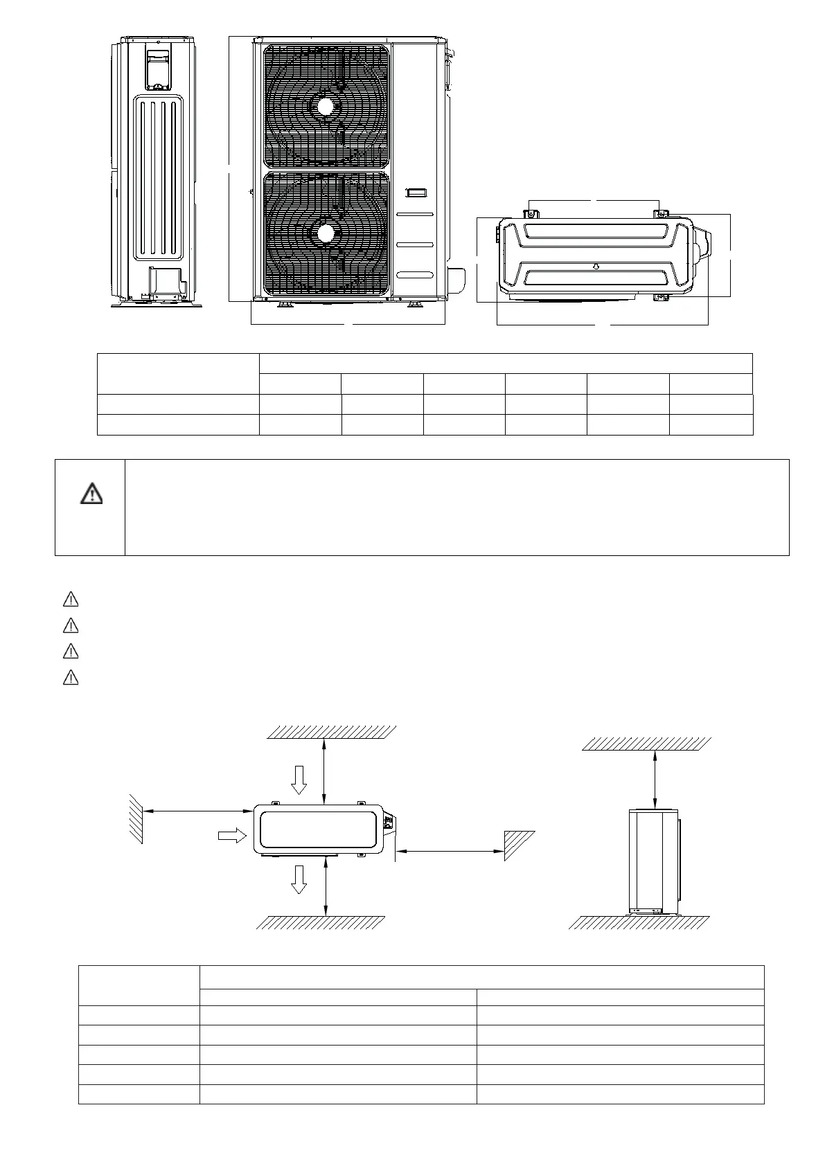 wind. Do not install the outdoor unit in recesses or air vents. Ensure compliance with the technical spaces