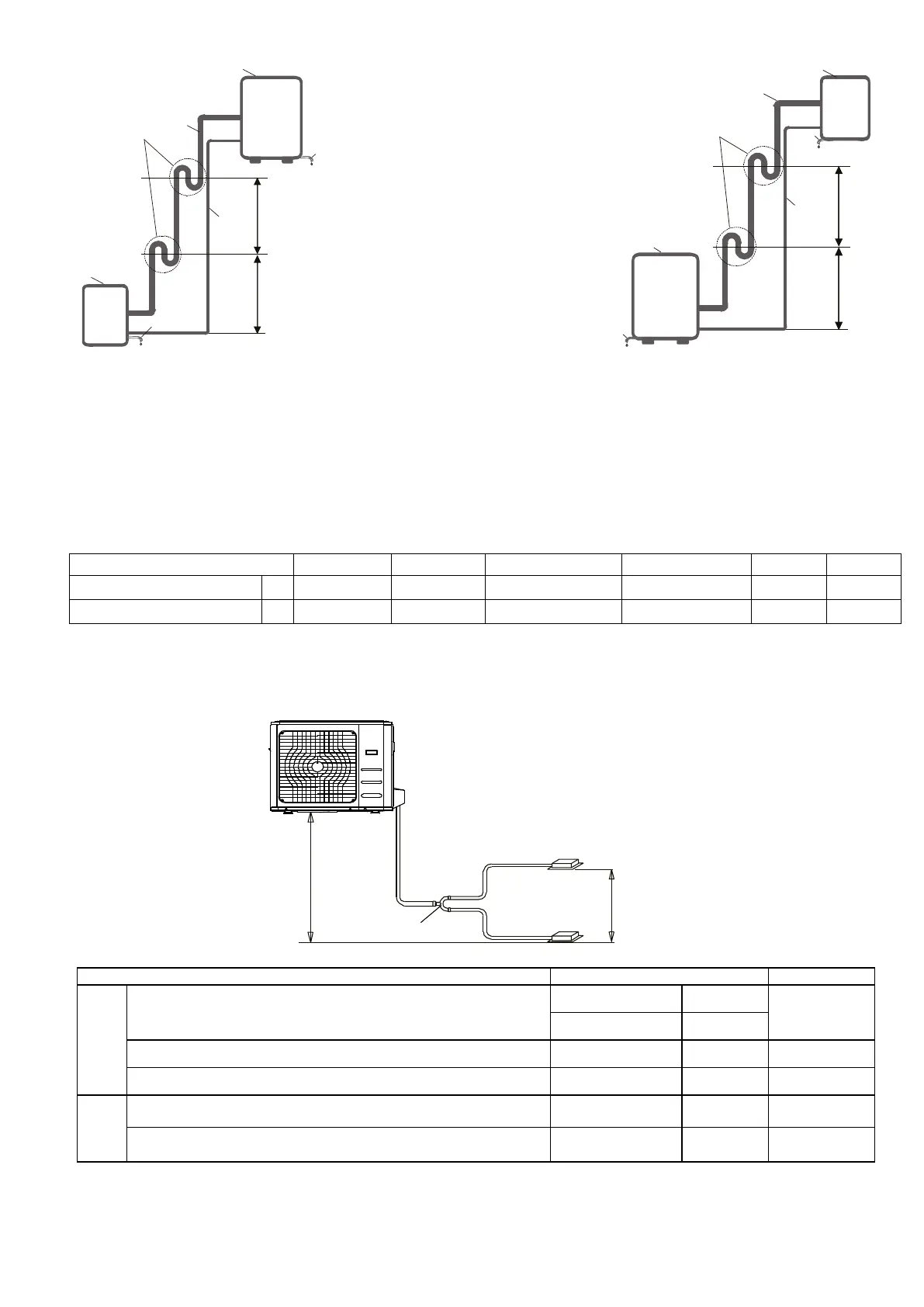 N.B.: The maximum height difference between the indoor and the outdoor units must not exceed the values indicated