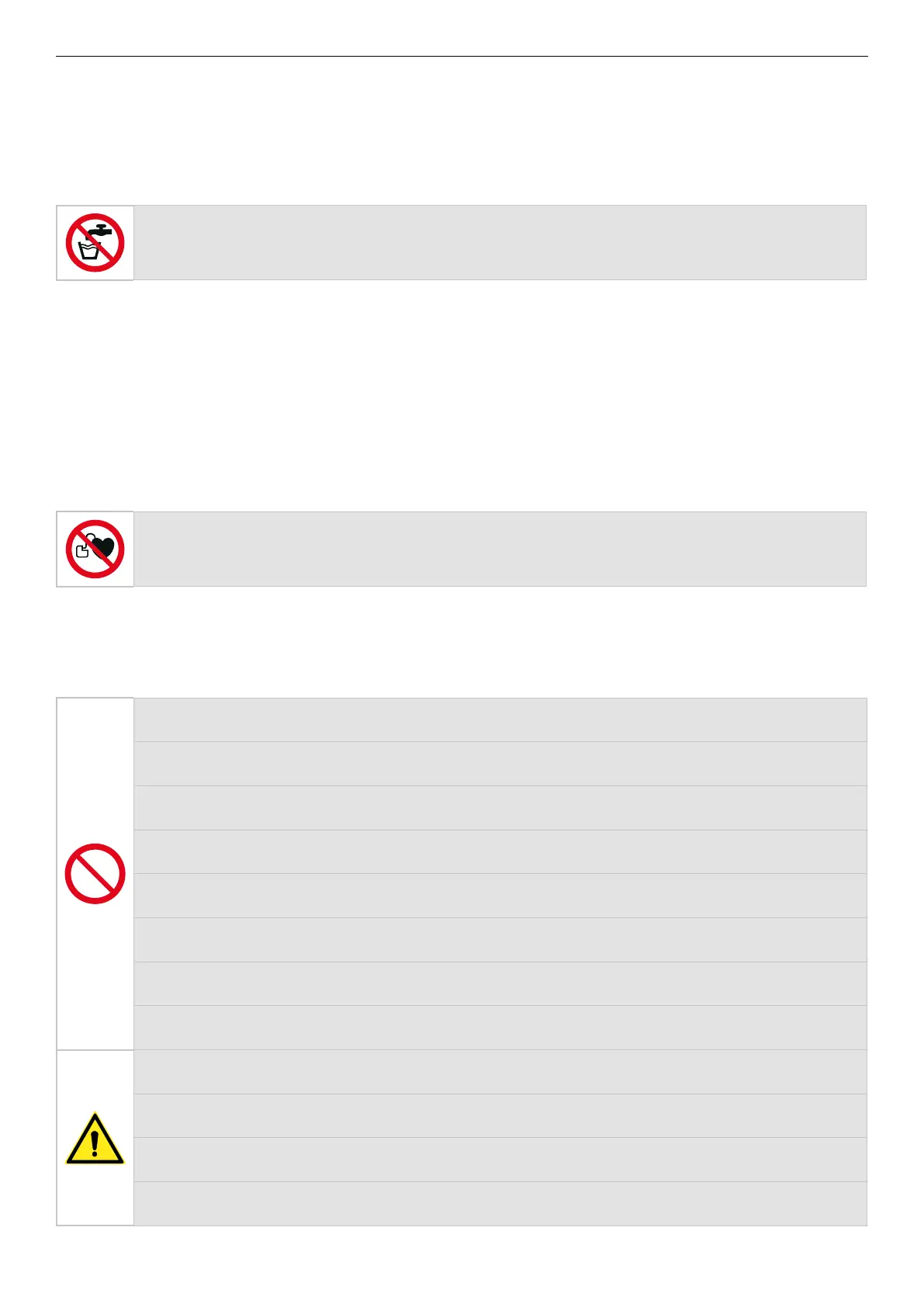 • Direct interacon with the unit by persons with electrically controlled medical devices, such as pacemakers, is prohibited, as harmful inter-