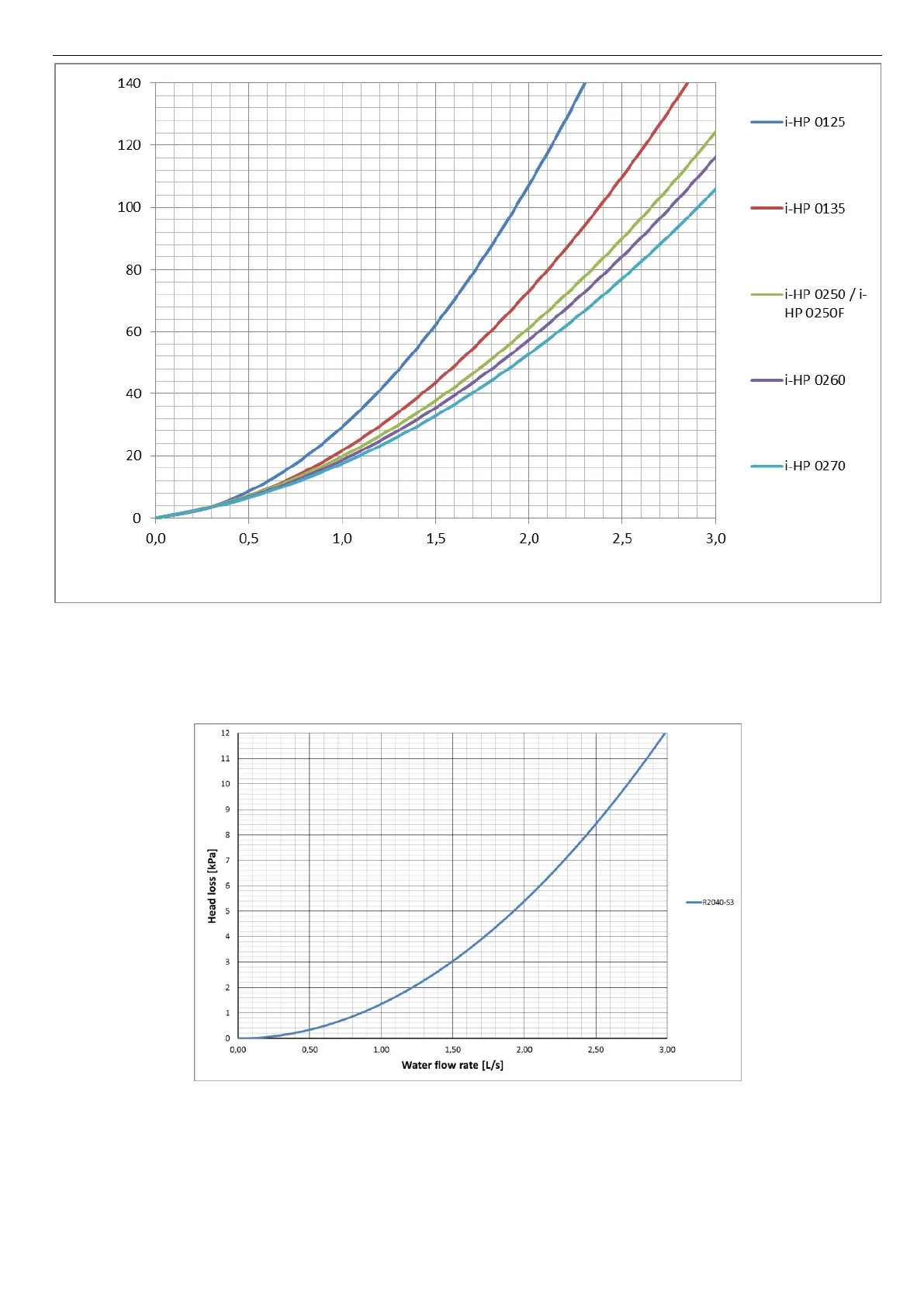 For example: for the model i-HP 0125 with nominal water flow 1,01L/s, we obtaine 1,4kPa (valve head loss) + 30kPa (hydronic