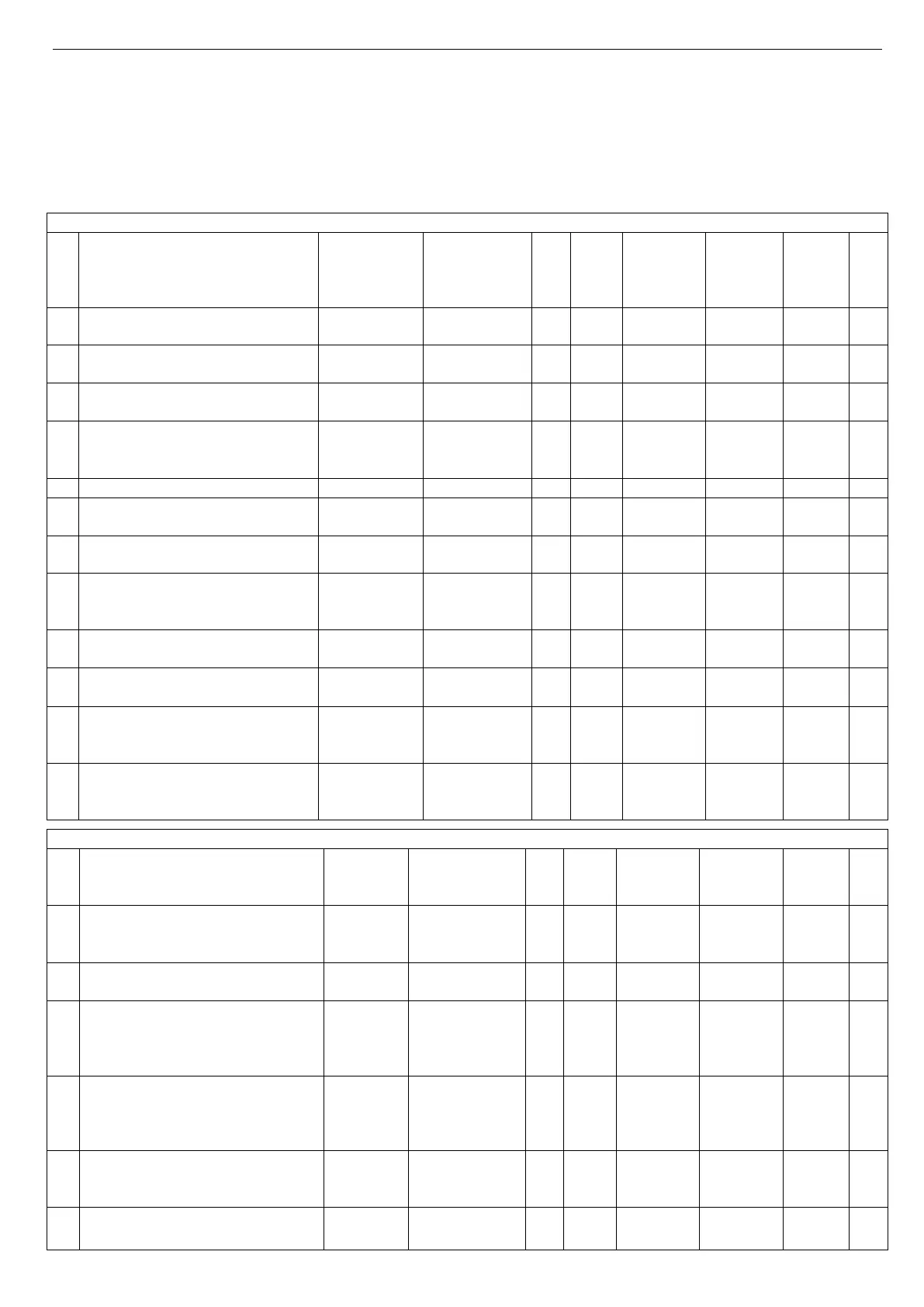 divided by areas of operation (the columns of the items "MODE" and "rxx" parameters indicate the operation mode and the