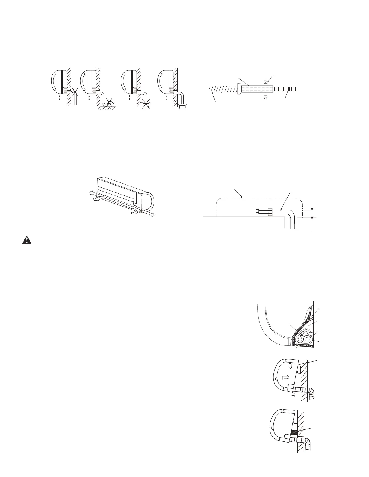 ■ Fissare il tubo di drenaggio inclinato verso il basso (cfr. prima illustrazione a continuazione).