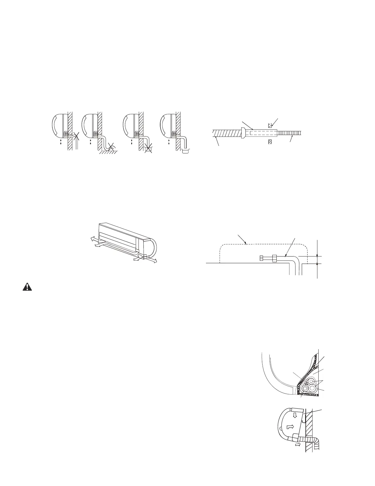 ■ Fissare il tubo di drenaggio inclinato verso il basso (cfr. prima illustrazione a continuazione).