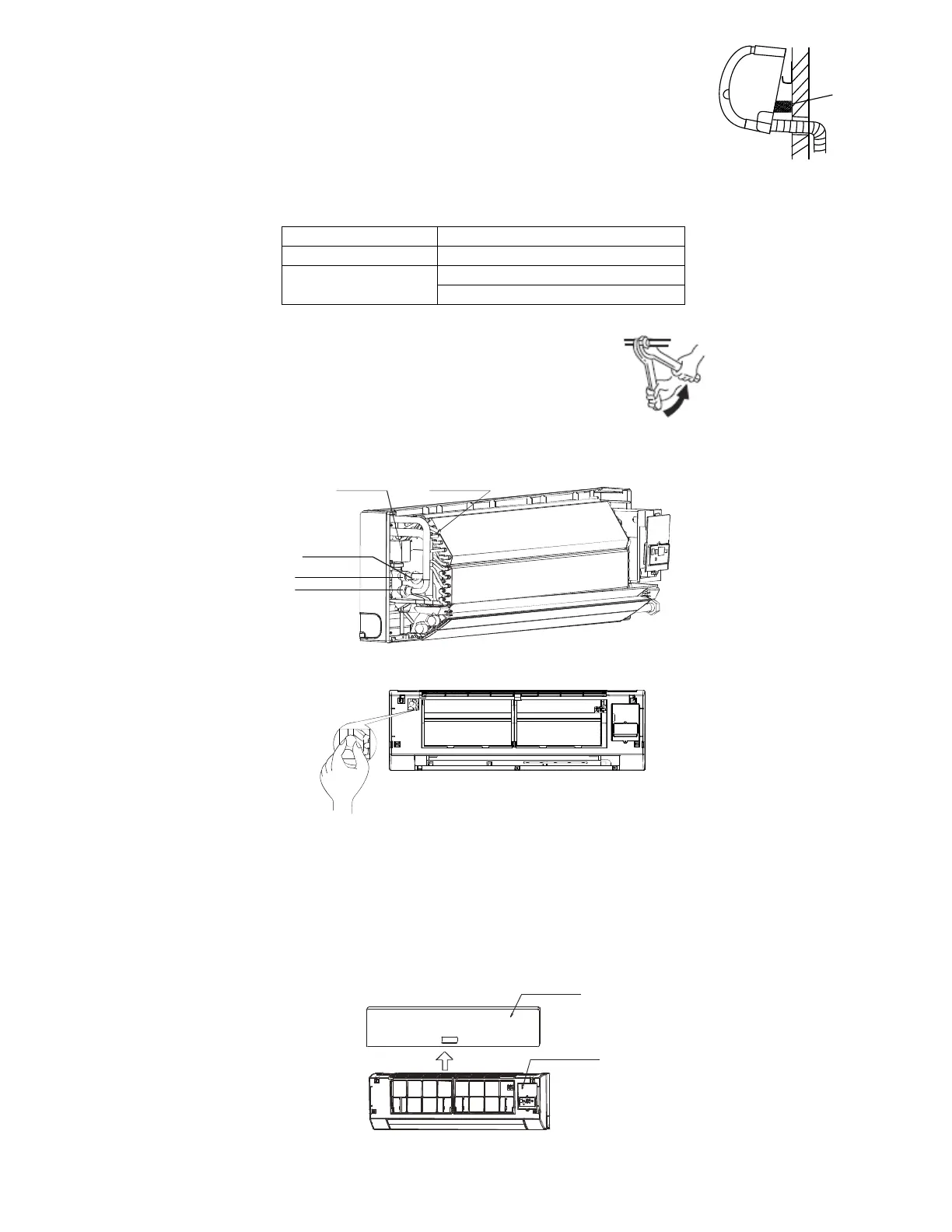 between the indoor unit and the wall. Get it out after finish piping.