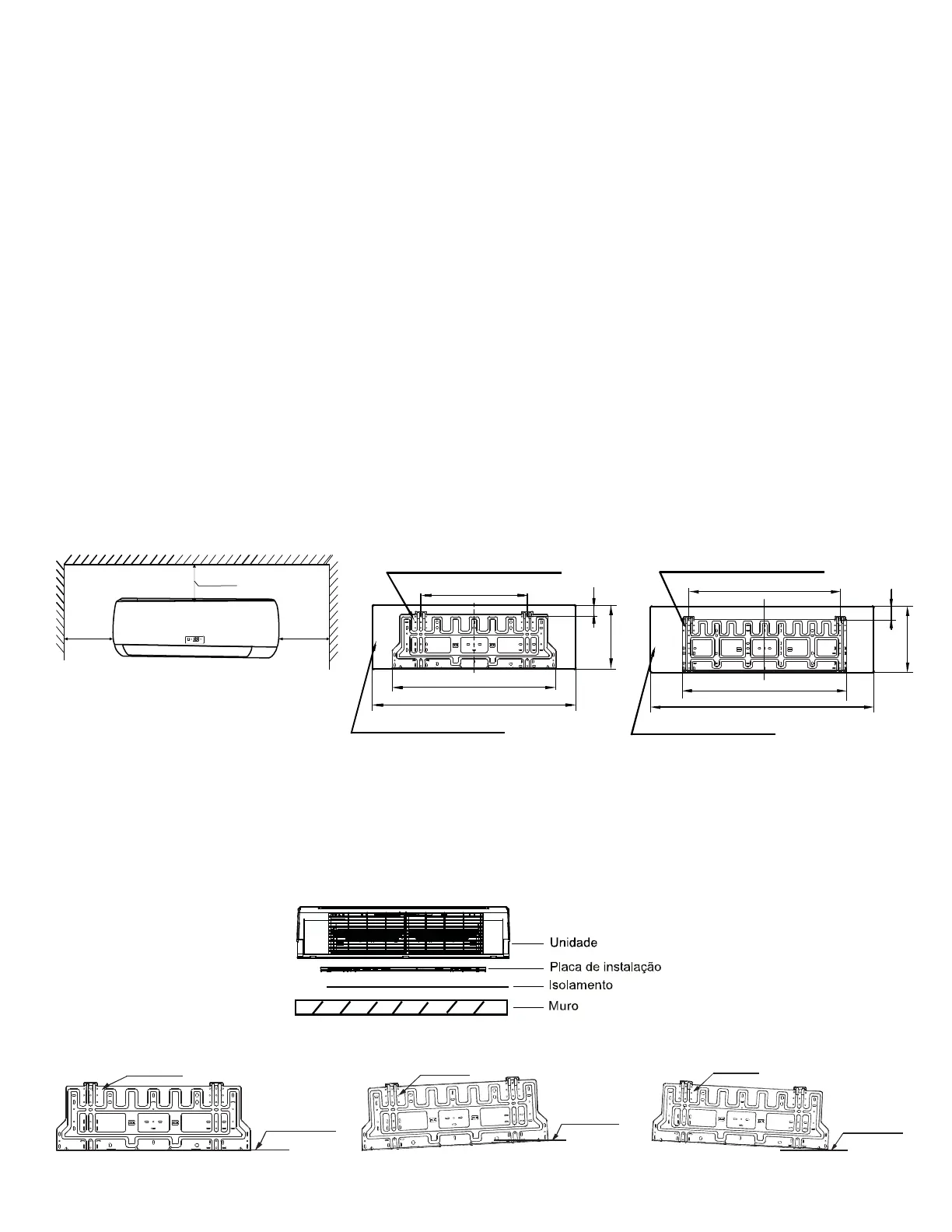 ■ Um local que fornece o espaço ao redor da unidade interna conforme exigido no diagrama.
