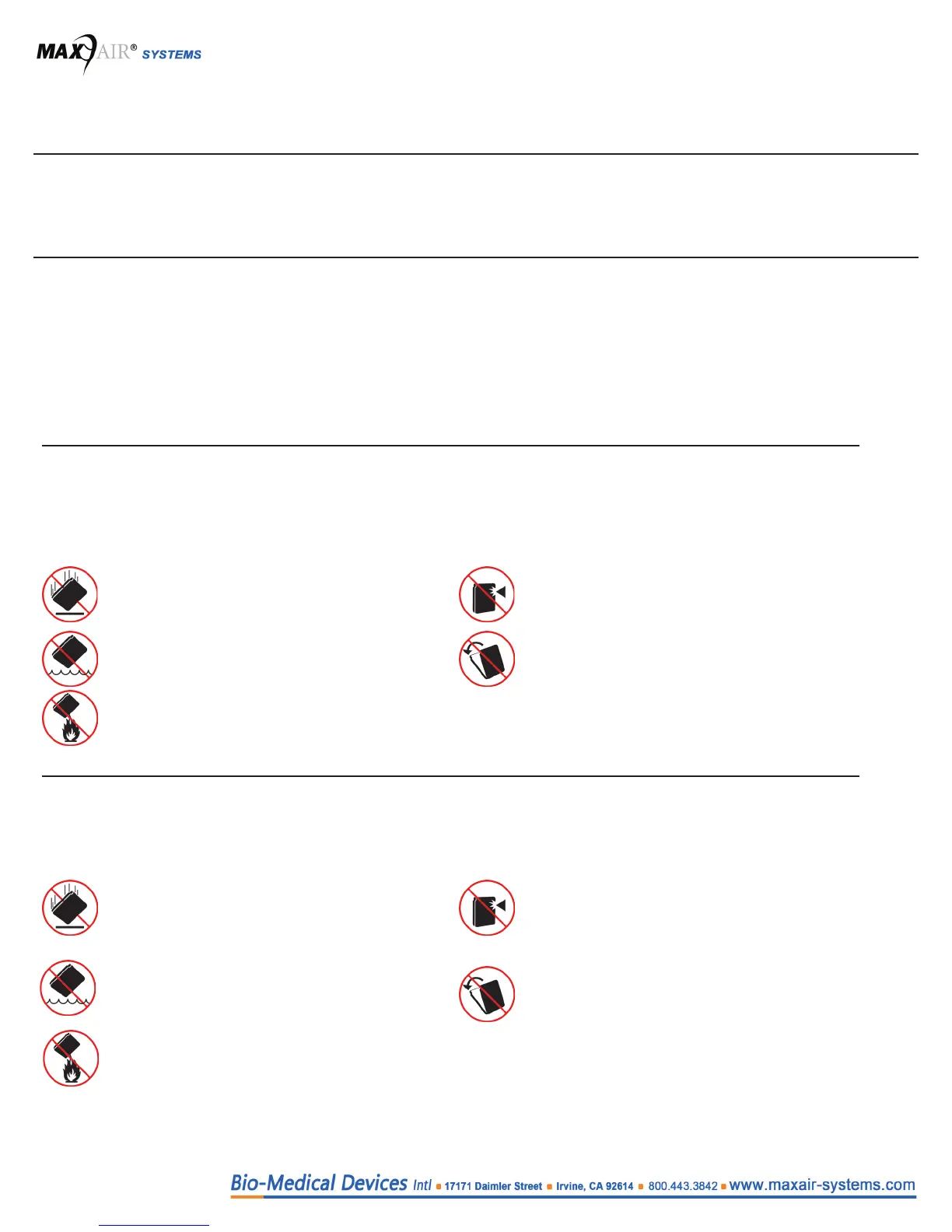 • MAXAIR Systems Li-Ion Batteries are designed to be maintenance free. If a battery has any damage or malfunction,