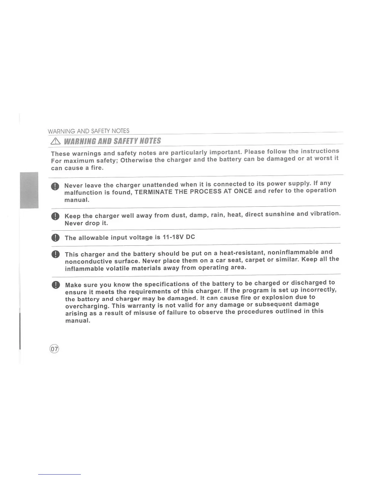 maxam Pro 5000 AC/DC - Important Warning and Safety Notes; General Safety Precautions; Input Voltage and Safe Surfaces; Battery Specification Matching