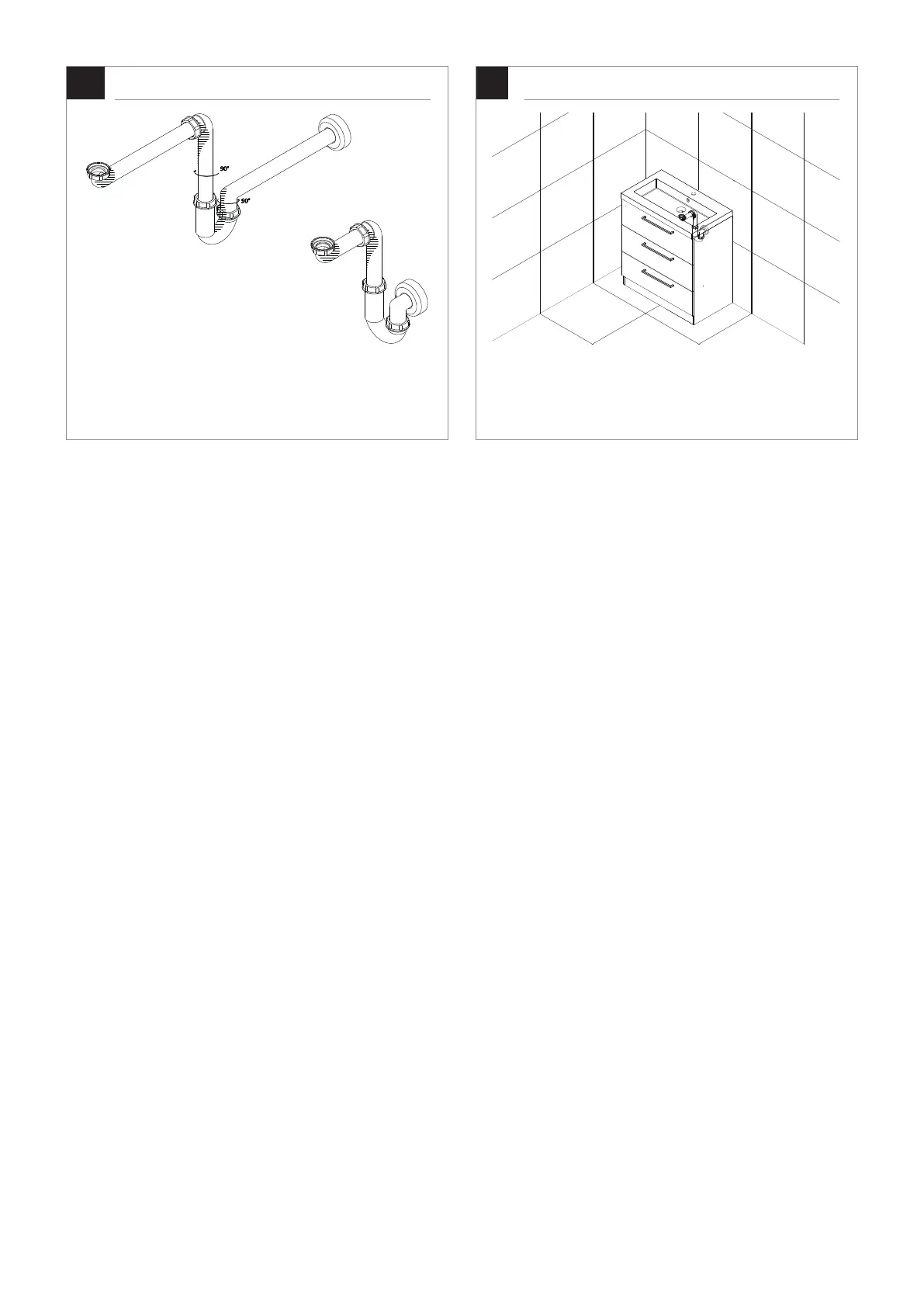 Zet de sifon als volgt in elkaar, draai de uiteinden 90 graden en kort in waar nodig.