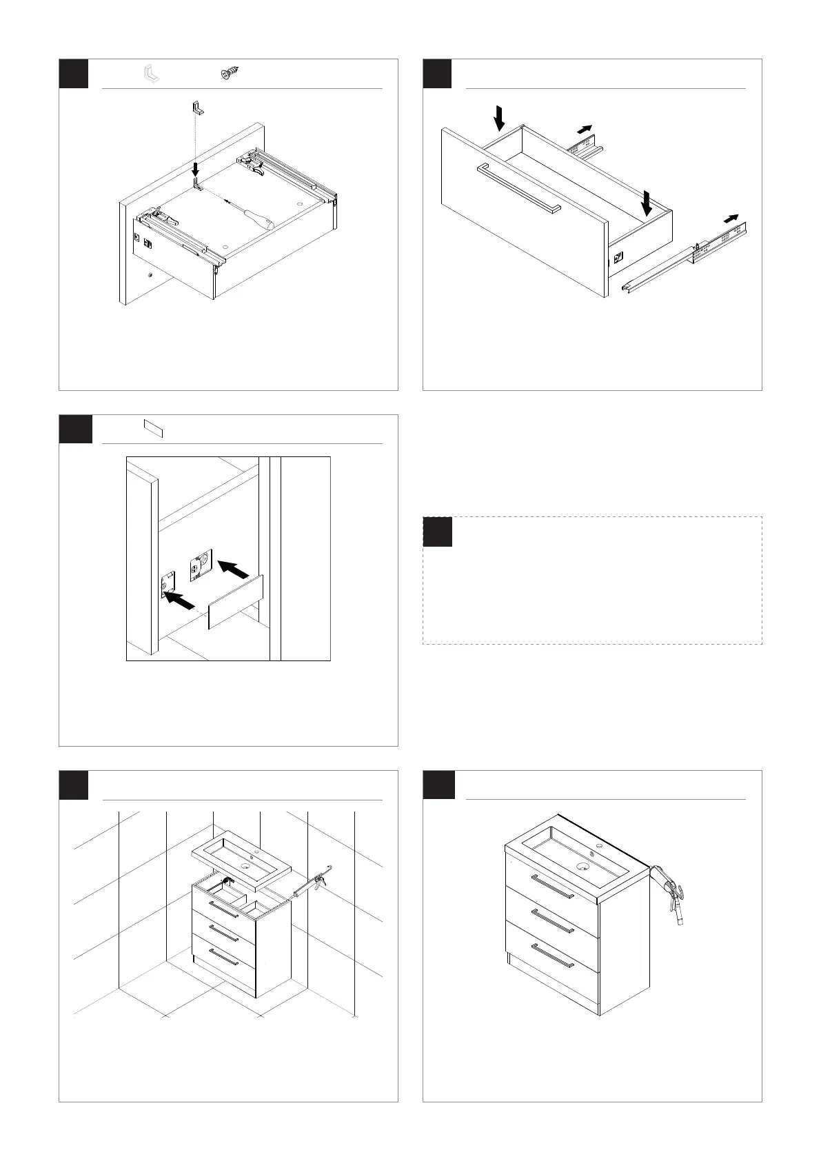 Schuif de geleiders volledig uit het meubel. Plaats de lade op de geleiders en duw