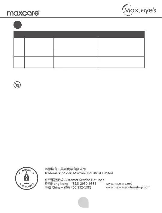 Maxcare Max Eye's - Faqs and Solutions; Technical Specifications