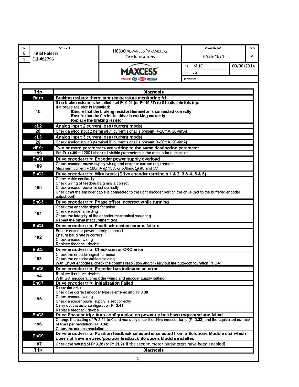 Maxcess H6630EM - H25-4674 - H6630 Advanced Parameters Trip Indications