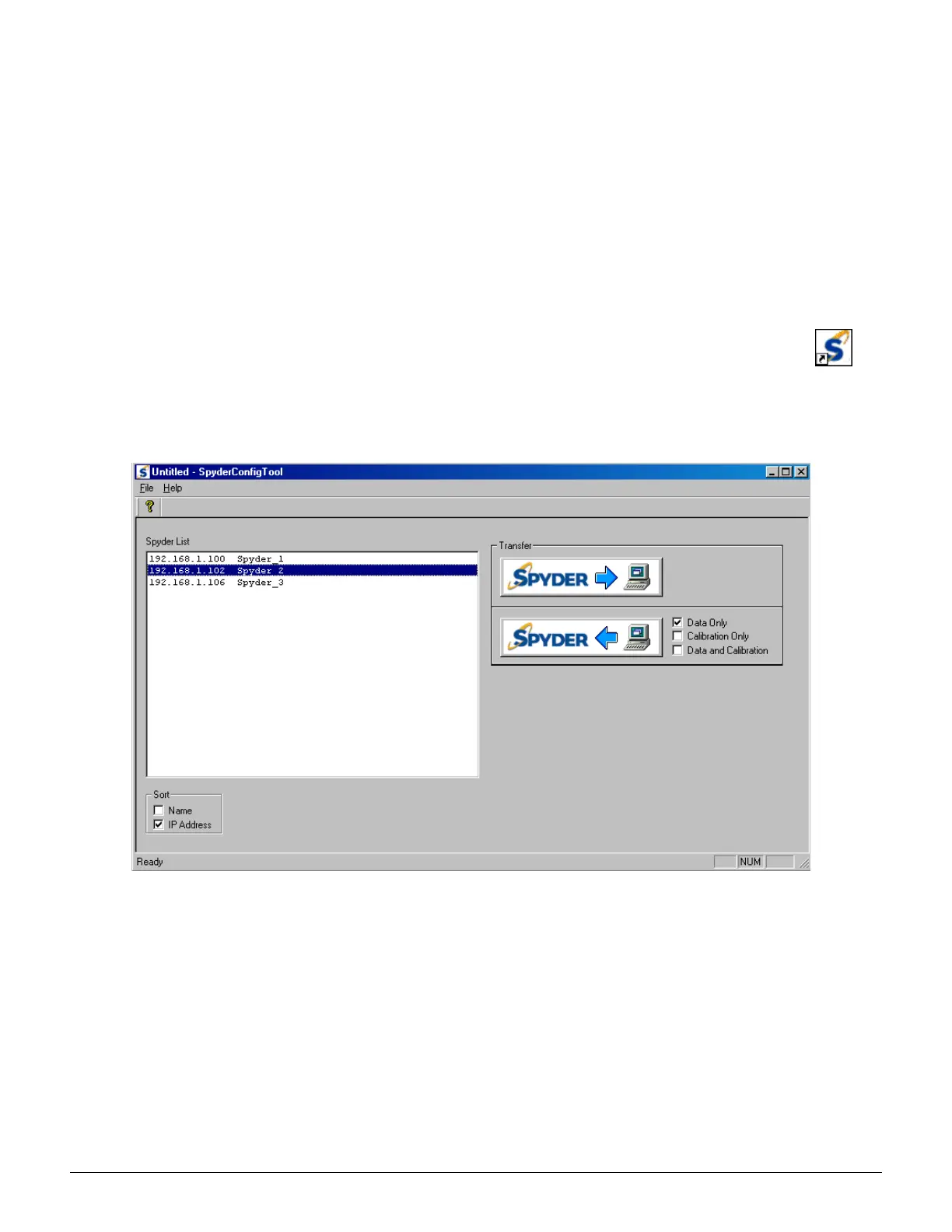 name. The "Sort" checkboxes select either sorting by IP Address or Spyder name. The list of connected Spyders is