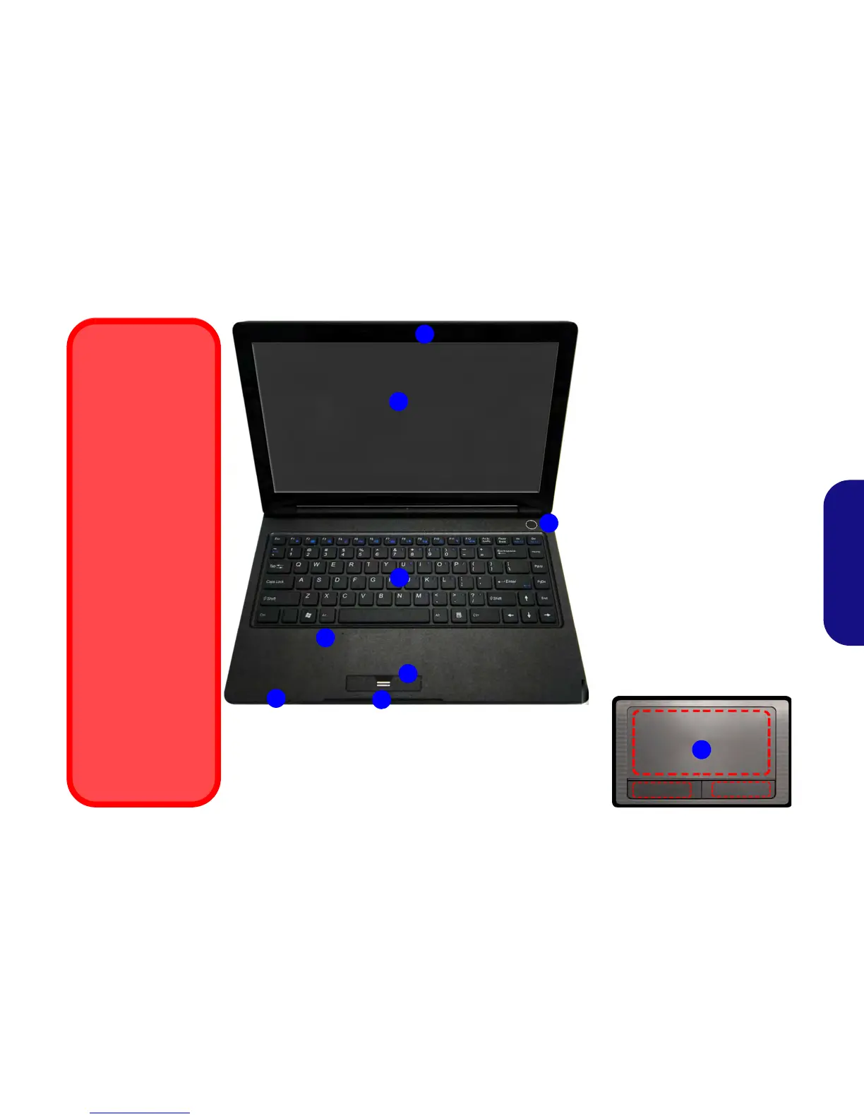 Carte du système: Vue de face avec l’écran LCD ouvert