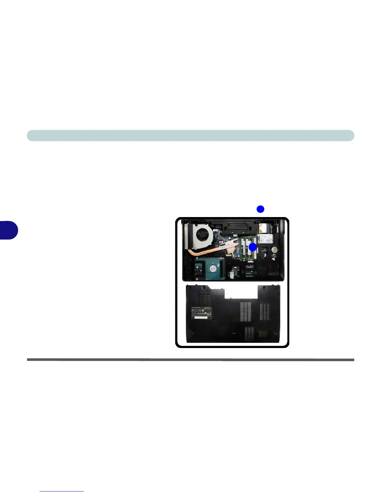 1. Turn off the computer, and turn it over and remove the bottom cover (“Removing/