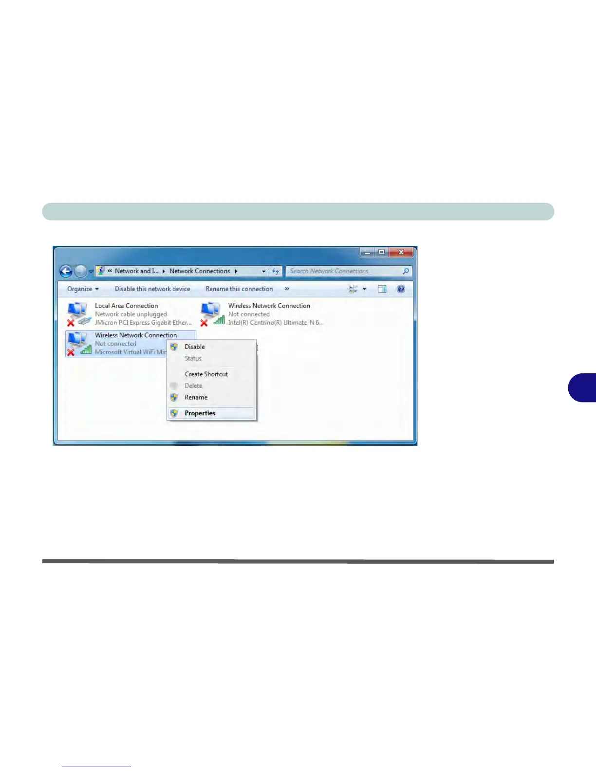 6. Right-click Wireless Network Connection and select Properties.