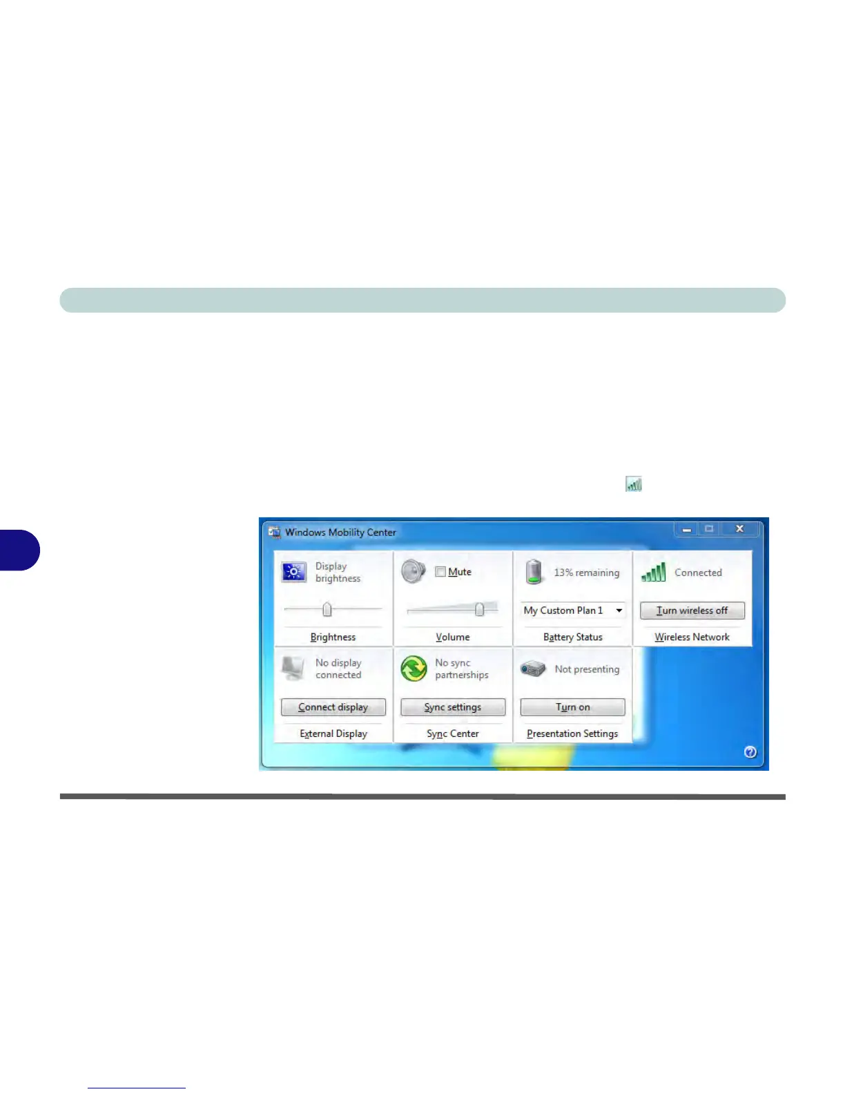 The Windows Mobility Center control panel provides an easy point of access for