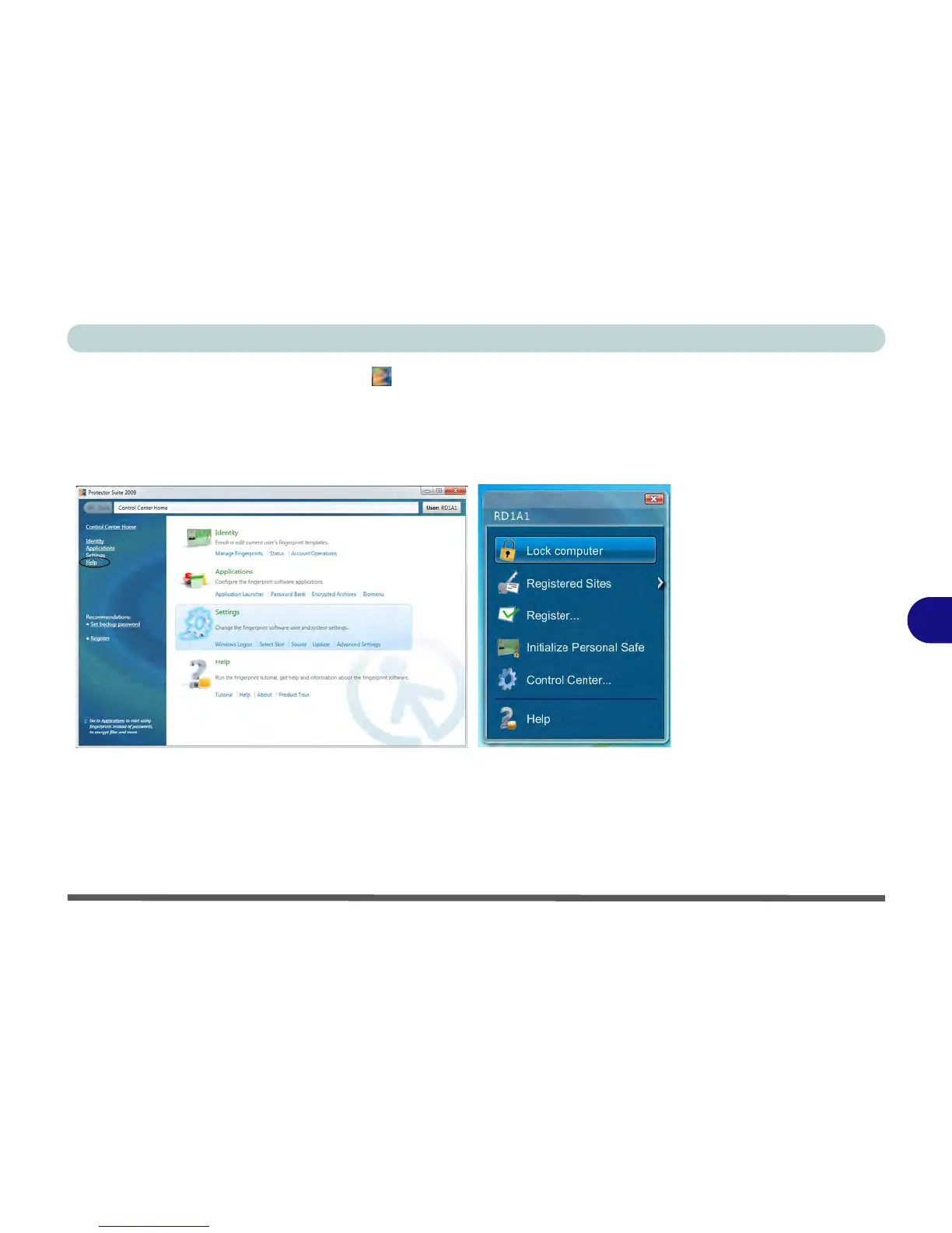 Edit Fingerprints, register Applications, edit Settings and access the Help