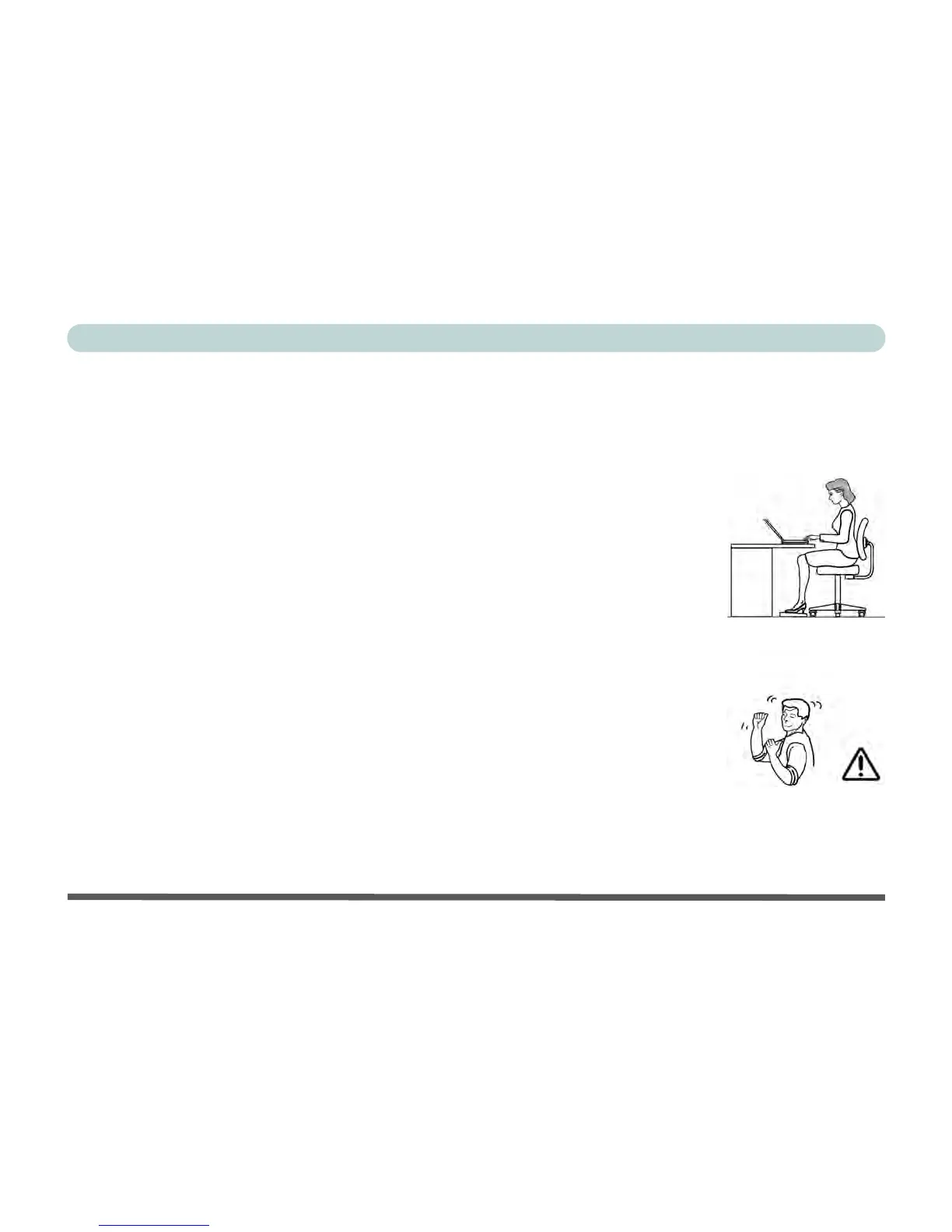 • Take periodic breaks if you are using the computer for long periods of time.