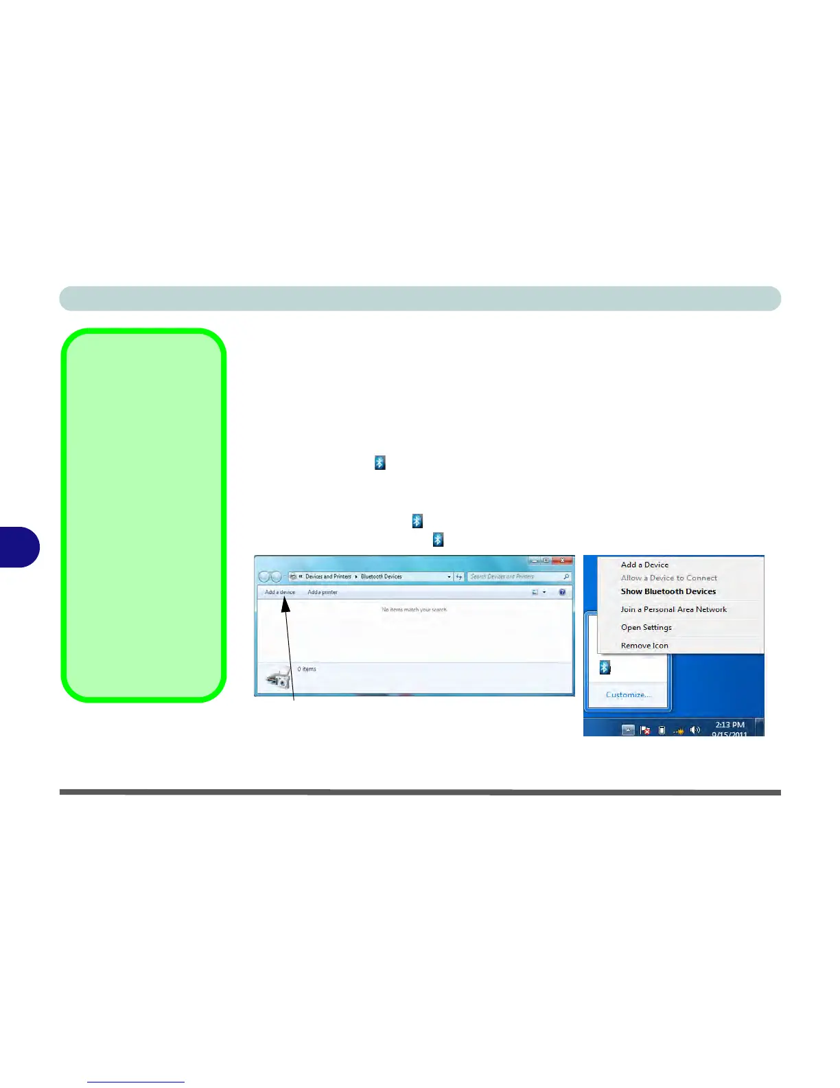 • Double-click the taskbar icon to access the Bluetooth Devices control panel.