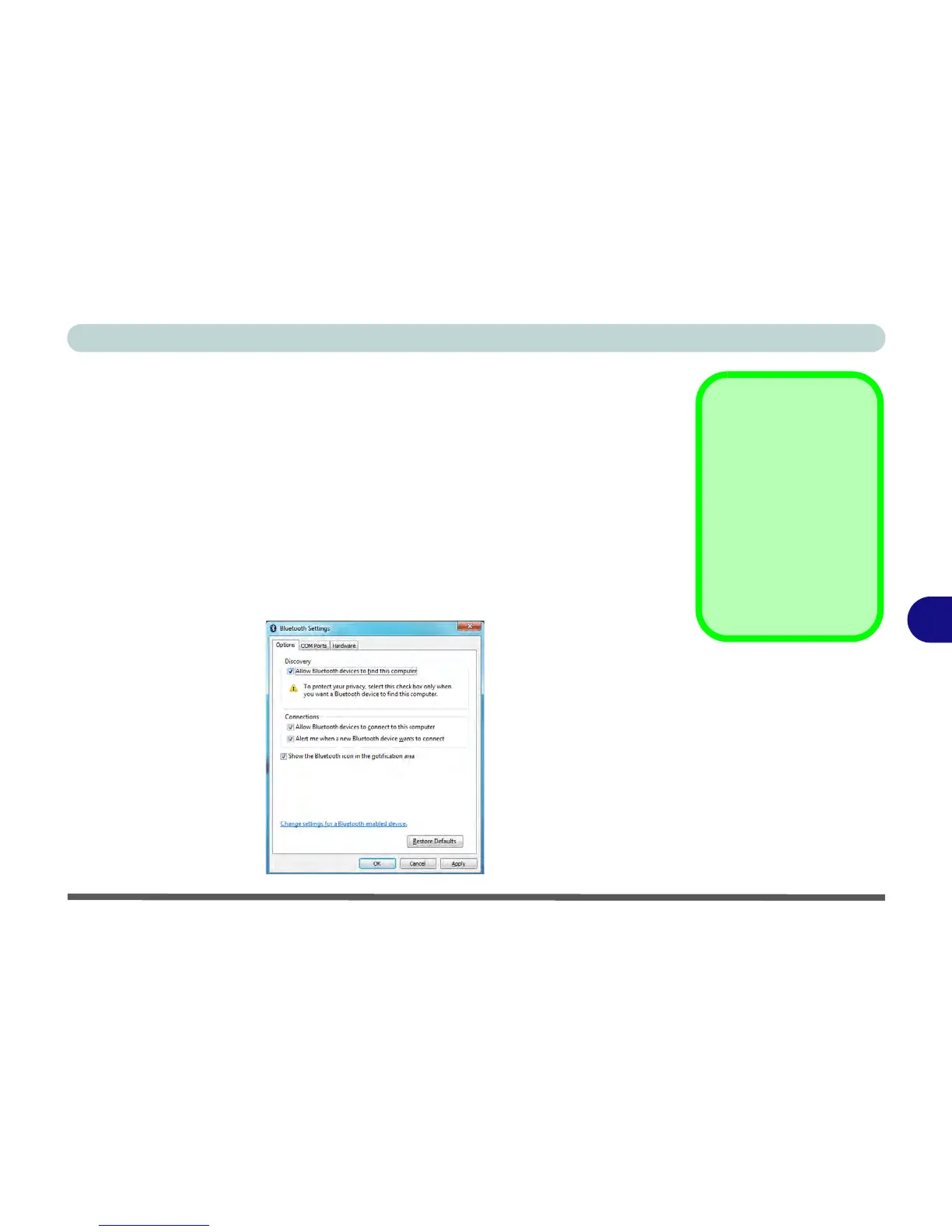 • Change the name of the device (click Bluetooth, type a new name and click OK).