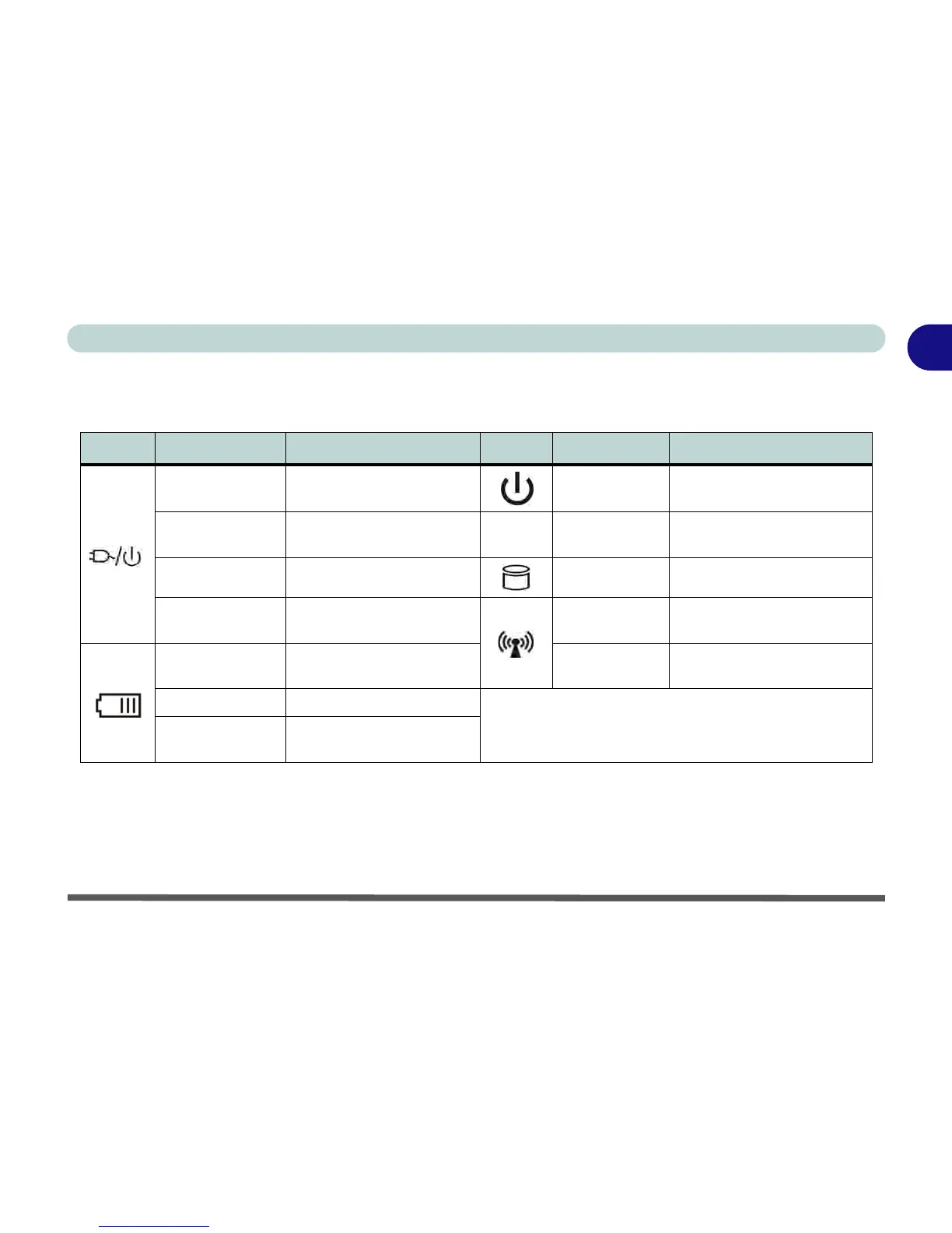 Table 1 - 1 - LED Indicators
