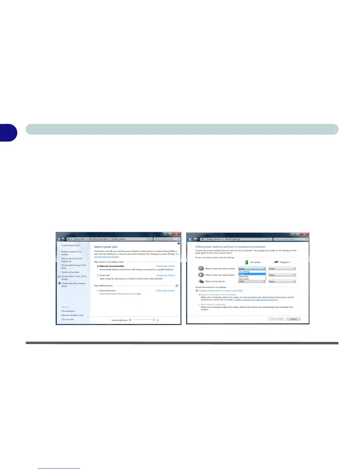 The Power Options (Hardware and Sound menu) control panel icon in Windows (see page 1 - 13) allows you