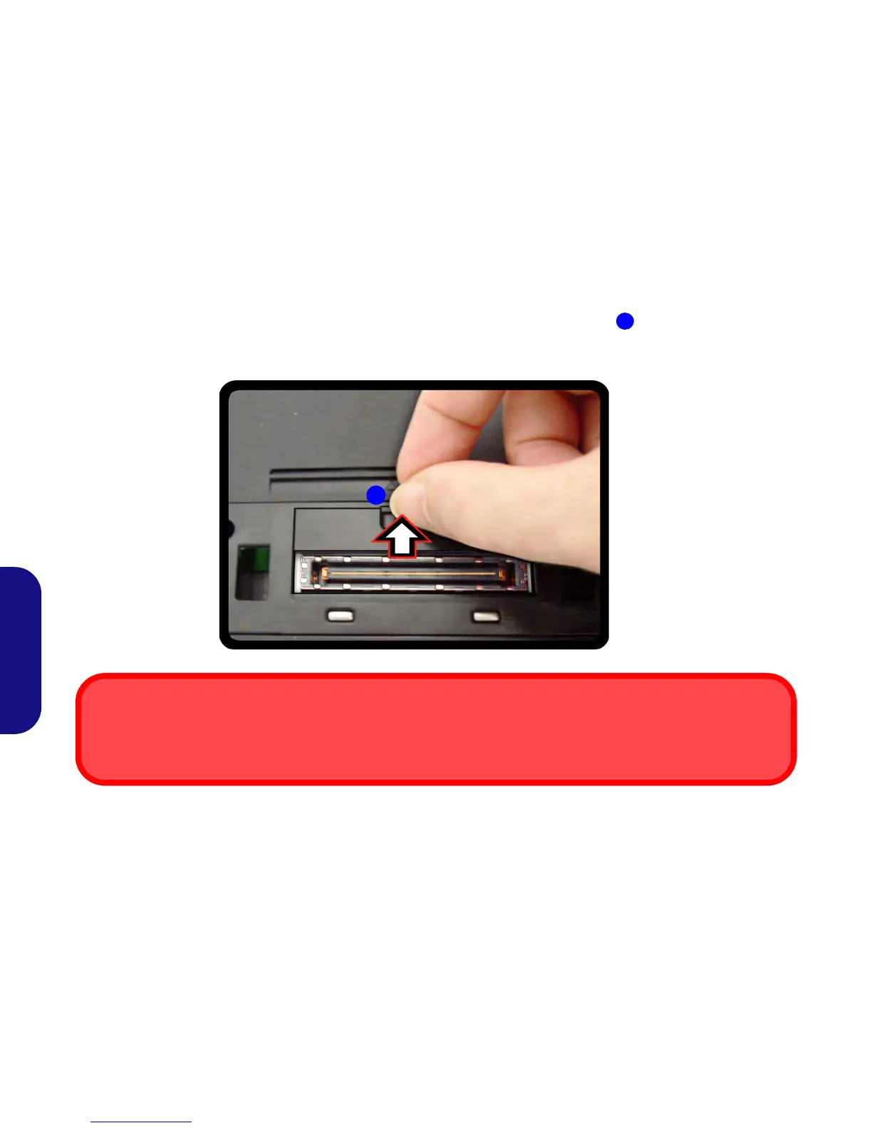 7. Deslice el pestillo de la tapa del conector del soporte del ordenador portátil en la dirección de la flecha hasta abrir la tapa (si no abre la