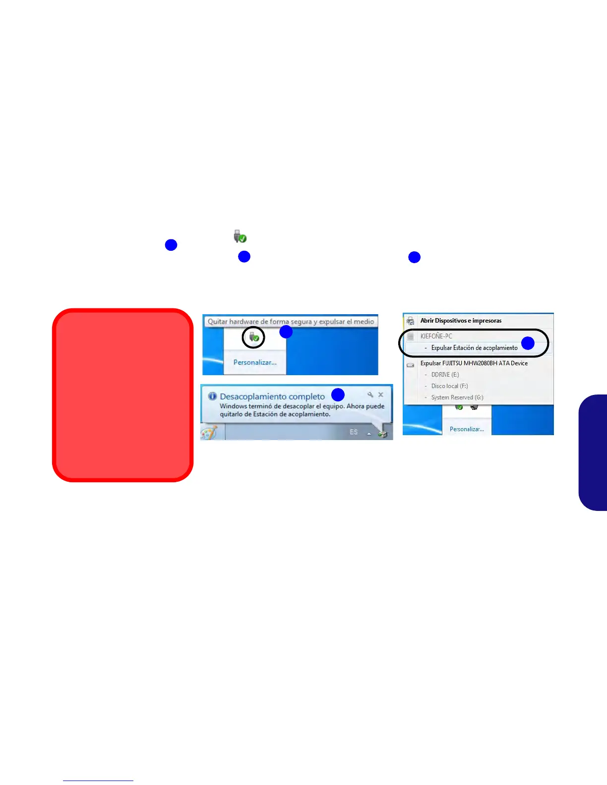 1. Con el sistema conectado, haga clic en el icono del área de notificación de la barra de tareas y seleccione Quitar hardware de forma