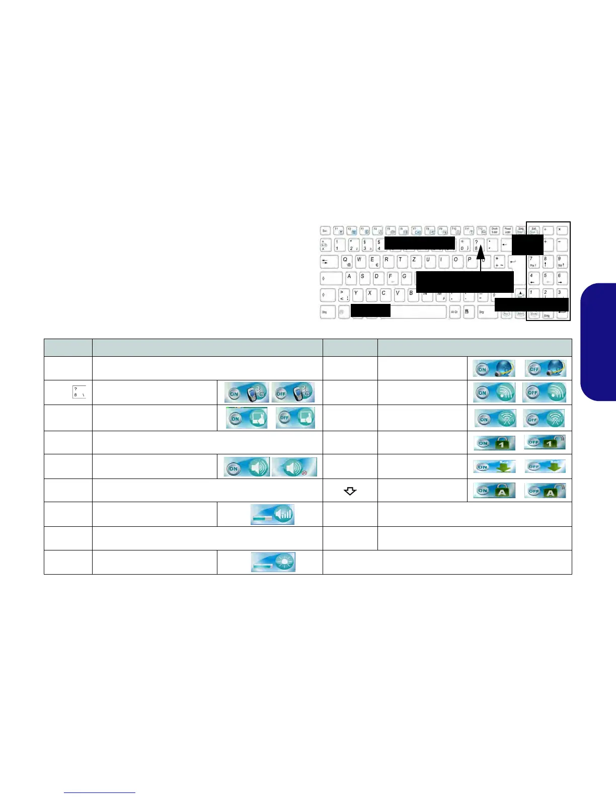 Fn + F7 Wechseln der Anzeigegerate Fn + Esc